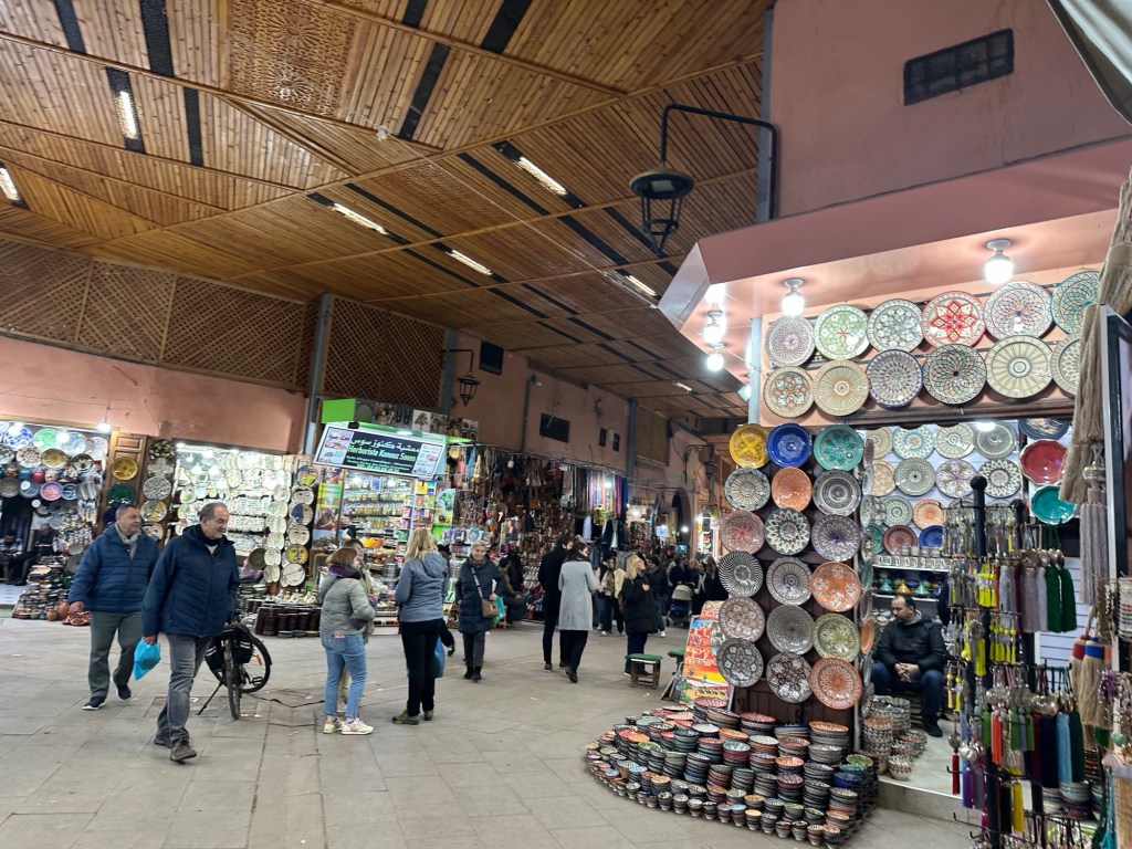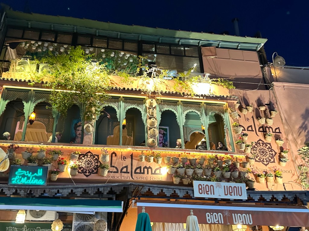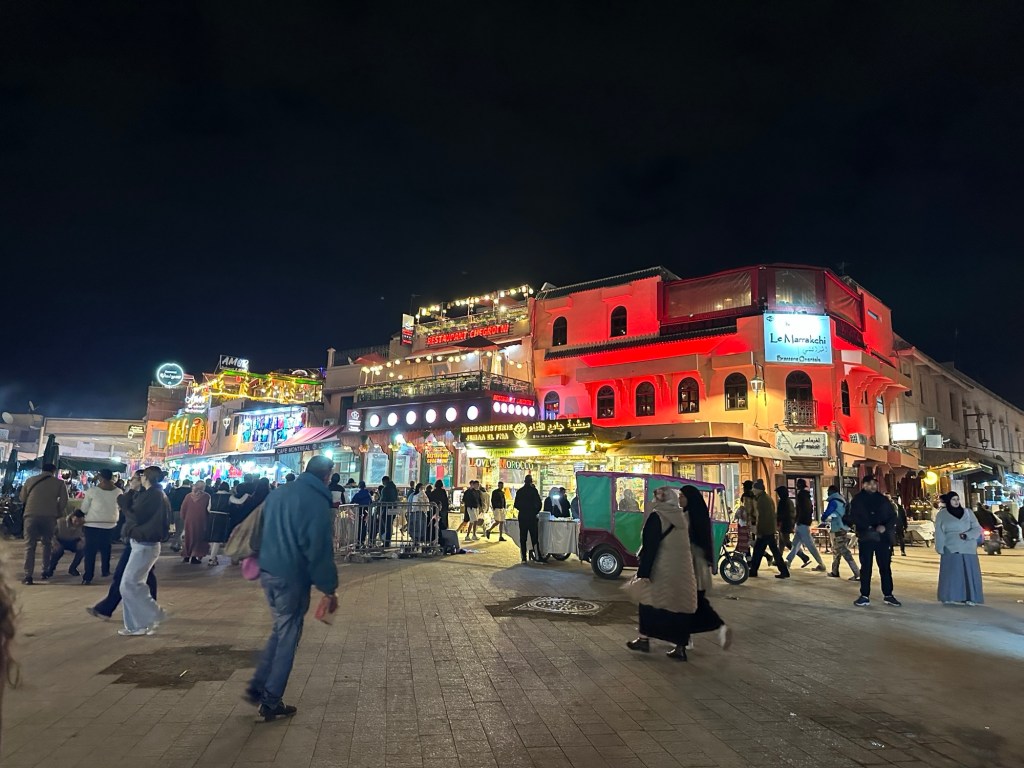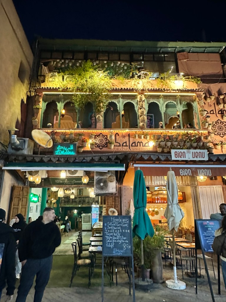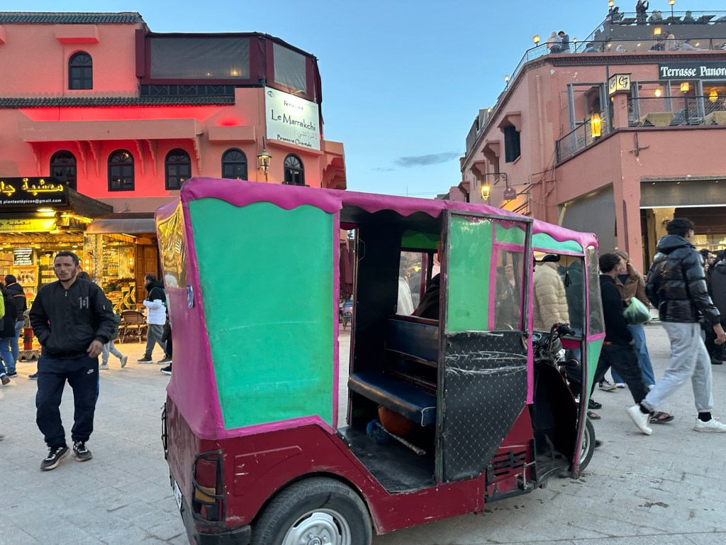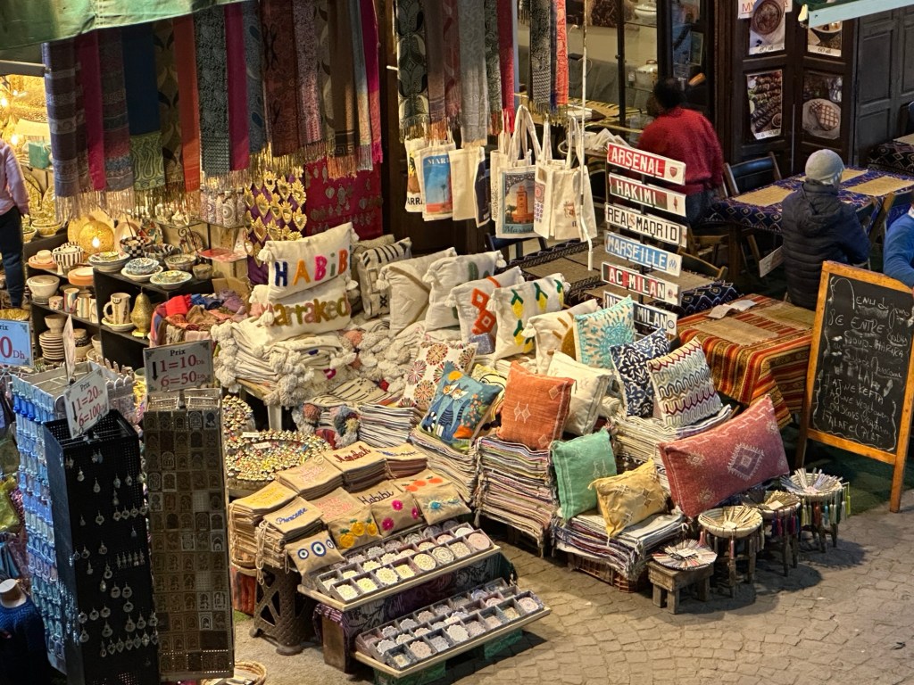 We decide to go elsewhere to have a drink but on the way we get caught up in the evening excitement of the Medina. There are food stalls, musicians, games, and the regular cast of scammers out to make a buck. You definitely have to be alert but at no point do I feel unsafe while walking around. After some shopping we find a cafe terrace with a view of a side street where we relax and watch people walk by. After a drink or two we decide we want to head back but we can’t resist a detour through the souks. Shops are closing up for the night and it forces us to go back to the hotel and rest. We have a hard time finding our way out and end up down deserted alleyways since we have no sense of direction here. Luckily we are able to backtrack to the main area. We try negotiating with tuk tuk drivers on the rates that our tour guide suggested but none of them are budging so we end up agreeing to a higher rate. Perhaps our guide doesn’t realize how much inflation has affected the tuktuk community? We later realize we misinterpreted the advice. Apparently we have been lowballing tuktuk and taxi drivers all over the city. Locals are probably surprised with tourists driving such a hard bargain. In the grand scheme of things the amount we are saving is only a couple dollars. I’d just be happy we aren’t getting grossly over charged for services.
