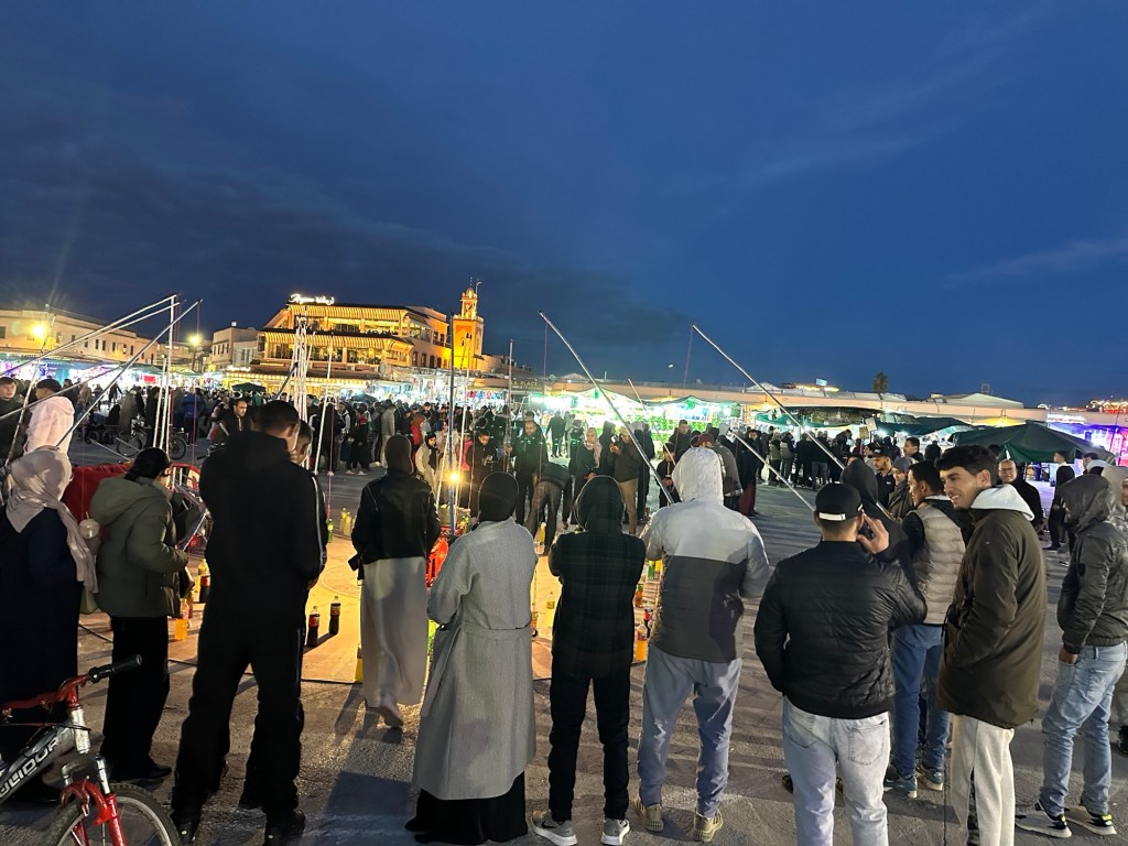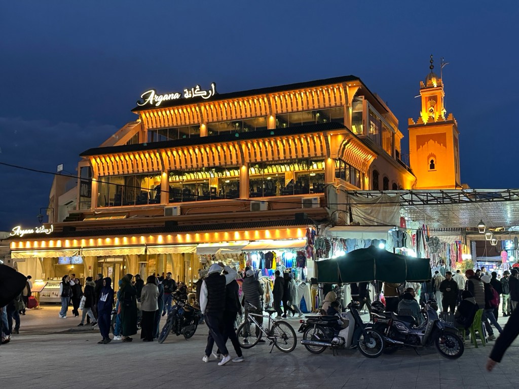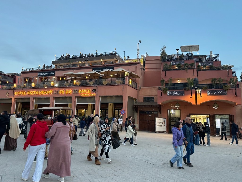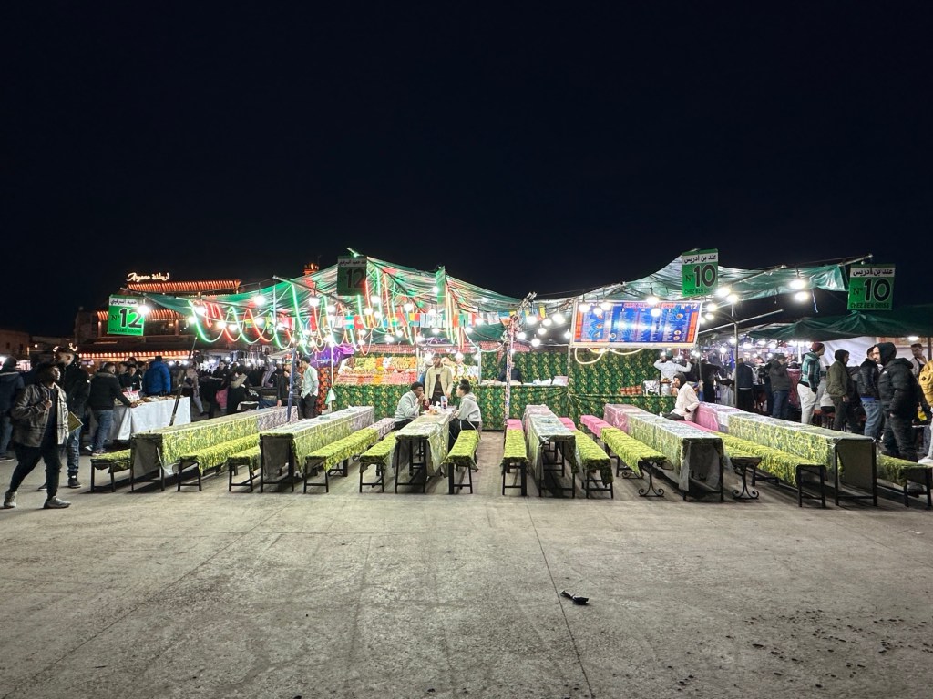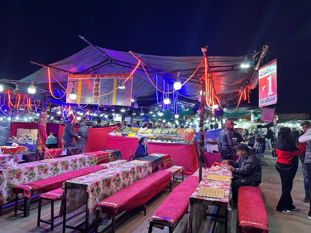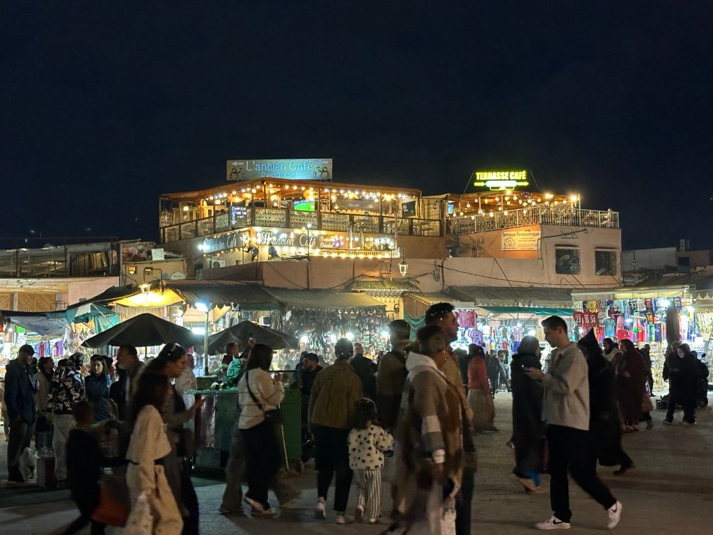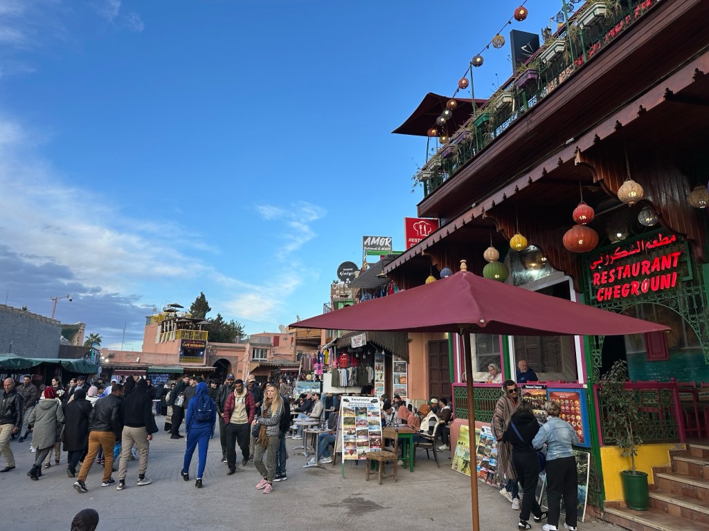 We decide to go elsewhere to have a drink but on the way we get caught up in the evening excitement of the Medina. There are food stalls, musicians, games, and the regular cast of scammers out to make a buck. You definitely have to be alert but at no point do I feel unsafe while walking around. After some shopping we find a cafe terrace with a view of a side street where we relax and watch people walk by. After a drink or two we decide we want to head back but we can’t resist a detour through the souks. Shops are closing up for the night and it forces us to go back to the hotel and rest. We have a hard time finding our way out and end up down deserted alleyways since we have no sense of direction here. Luckily we are able to backtrack to the main area. We try negotiating with tuk tuk drivers on the rates that our tour guide suggested but none of them are budging so we end up agreeing to a higher rate. Perhaps our guide doesn’t realize how much inflation has affected the tuktuk community? We later realize we misinterpreted the advice. Apparently we have been lowballing tuktuk and taxi drivers all over the city. Locals are probably surprised with tourists driving such a hard bargain. In the grand scheme of things the amount we are saving is only a couple dollars. I’d just be happy we aren’t getting grossly over charged for services.