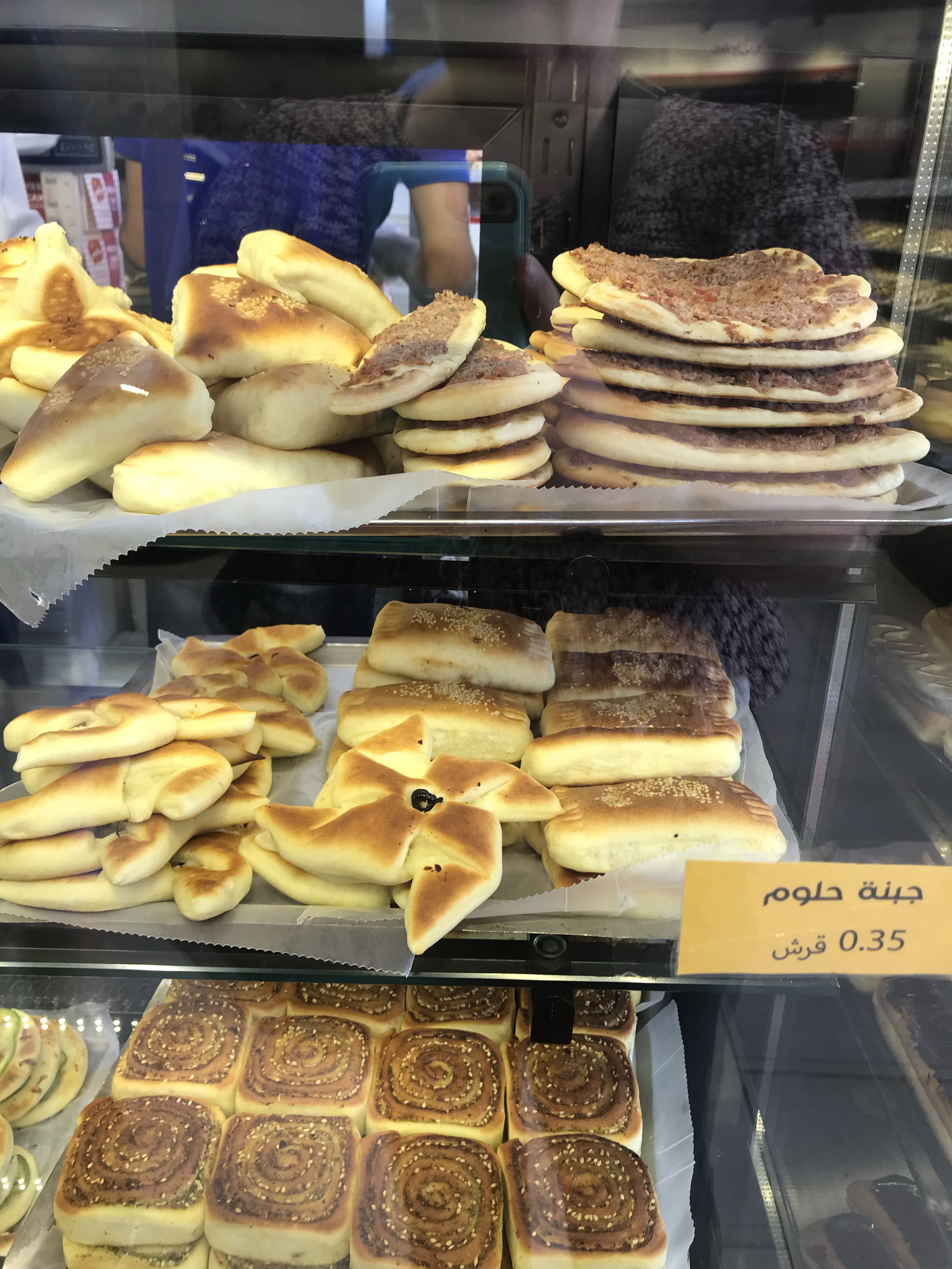 We head to the souq and are given a tour of the different parts of the souq. We have free time to shop afterwards. I only buy a couple things but I do taste many different types of dates at the date souq. I eye the tahini making machine and a gentleman working the shop gives me a warm sample of the freshly made tahini. Being so very good I am tempted to buy a jar to take with me but I still have a couple weeks left for my travels so it is not a practical idea. I go into an air conditioned building with the upstairs “antique market”. I am disappointed because there are no antiques here, just junk I can get in the USA or other countries. I do enjoy a pistachio coffee from the shop upstairs though.