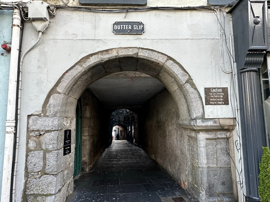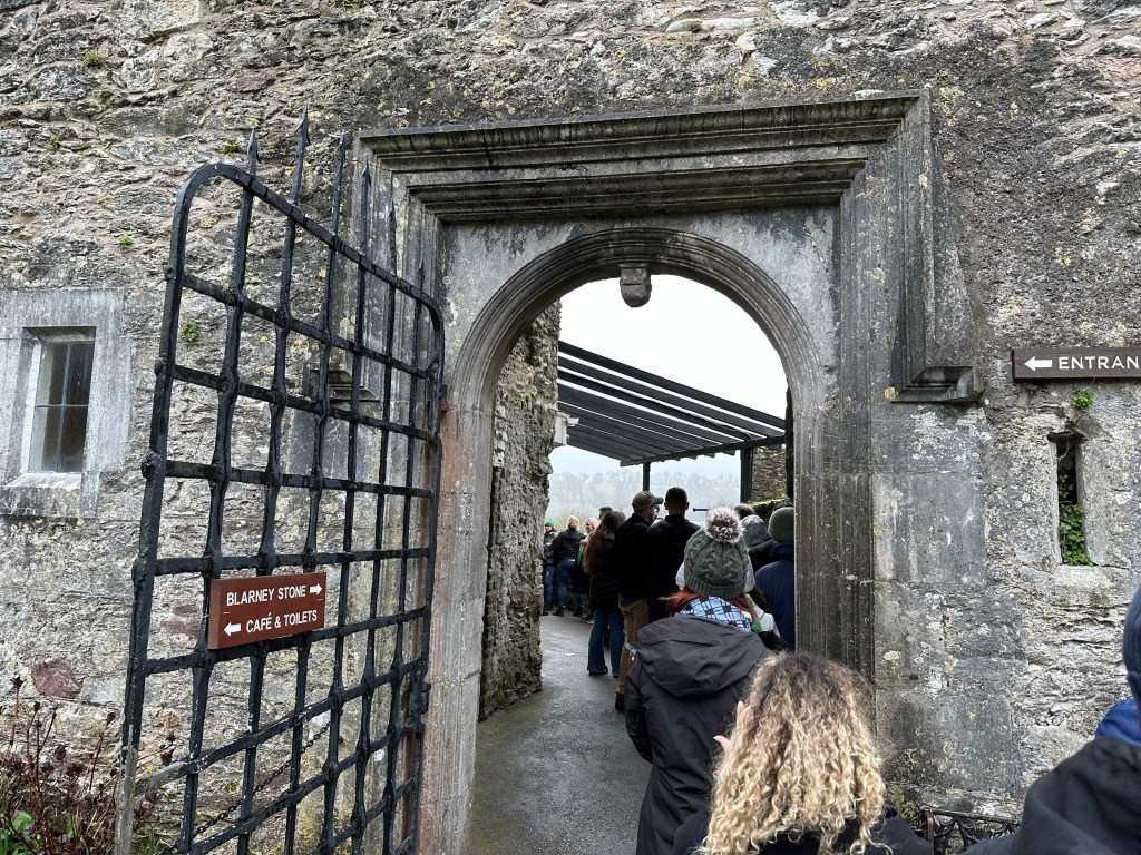 The second stop is at Blarney Castle. Blarney castle is basically an old medieval castle. People come for the beautiful lure of the castle, the nice grounds around the castle and the most popular Blarney Stone. The legend is that if one kisses the stone they get the gift of gab, or ability to speak with eloquence. I don’t know about all that but I waited in a pretty long line to kiss the stone and not sure much has changed with me. My friend decided to forgo it all and I don’t blame her, who in their right mind would kiss a stone that millions of others kiss. Anyway I am here and I am doing it. As I wait in the long line I admire the castle but it would be nicer to see it without a line snaking through it. I get closer to the top and ask these two girls near me to take my picture figuring they would do a decent job since I see them taking other photos of each other. However at the last minute the man in front of me, also by himself, wants to work out an agreement that we take each others pictures. I reluctantly agree. They do sell photos here of the kiss but I want my own instead. When it is time for the guy to go do the thing he freaks out and cannot do it. We wait there for him to gain his composure which he never does. You see you need to lay on your back and lean your head over while one of the men lower you down. I can see how some would find this whole thing scary but I just turn off the fear switch and do stupid stuff like this so it is no sweat to me. Did I mention it is raining the whole time so everything around is like wet? He decides not to do it so I give him my phone making him at least hold up his part of the bargain. The whole thing happens so fast but I think I am really good at this and have reached down low. I pop back up and my guy says to me “I’m sorry I forgot”. What?!? He forgot to take my picture, his one job? I am annoyed and he is still up there contemplating everything and I resolve to buy the photo the castle takes. He eventually gives up and goes back down. I buy my photos since they are not too terrible anyway. Since I spend so much time in line I basically have no time left to explore the grounds. I head to the bathrooms to meet my friend and return to the bus. While I wait for her I look at photos on my phone and realize he did actually take some pictures. They aren’t the best but he wasn’t totally unsuccessful. Now I feel bad for being annoyed since his anxiety about the whole thing problem had him all out of sorts (plus language barriers). I’ve been there with the anxiety so I know. I feel fortunate that I am able to control my anxiety most of the time these days.