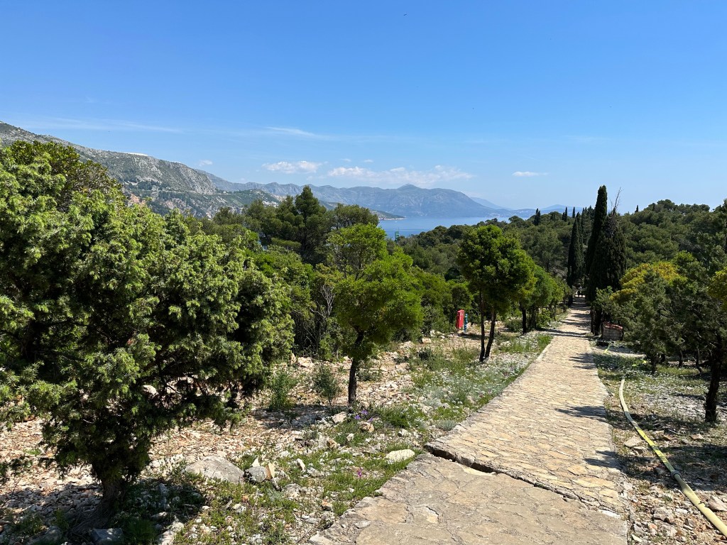 We take the ferry to Lokrum island mid-day the next day. The island is nice and calm and big enough to escape the crowds. We see the place on the island where game of thrones is filmed and the associated throne. We also see some peacocks that are residents on the island. And we take a hike uphill to get a nice view of the city.