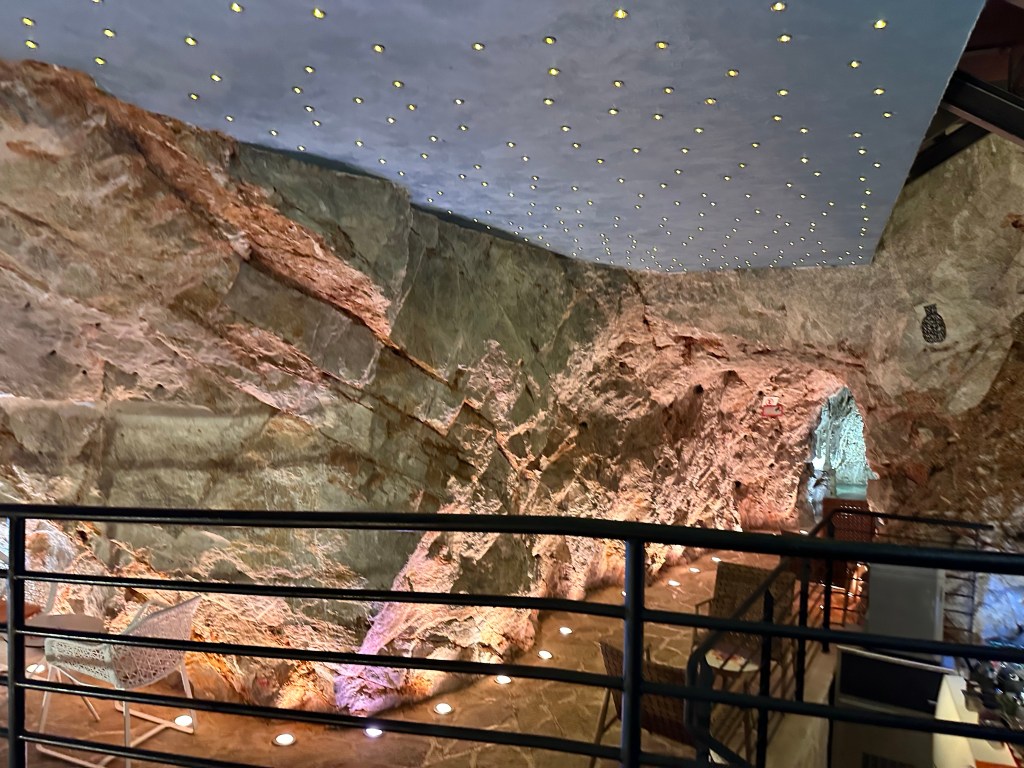 Our views of the city from here are a little obscured from here due to the haze and the lowered sun. The cave is nice and cold. We do a quick swim and head back towards the starting point.