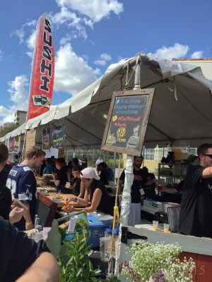 Walking around town I notice booths are being set up in pieces, mostly from scratch. People hang by harnesses to attach the metal structures that would later form the booths.