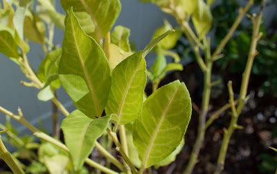 We have 4 citrus bushes in our backyard and over the past few weeks I have noticed that one is going into decline. This weekend I was able to do a little research on the matter and I think I have come to the conclusion that my bush has a nitrogen deficiency. The UF extension office web site has wonderful advice on every kind of issue that a gardener could have in Florida. It is a great resource to use. I have officially diagnosed the problem with the Eureka Lemon as Yellow Vein Chlorosis. This also could be caused by water damage. To treat this problem, I will be monitoring the irrigation in the area and I have applied some cottonseed meal I had in the garage to increase the nitrogen levels a bit. Hopefully I will be able to save our only lemon bush.