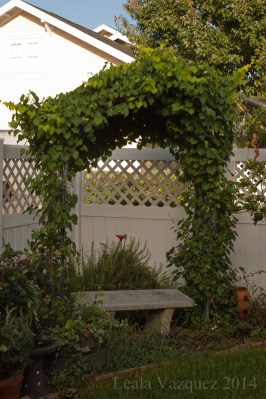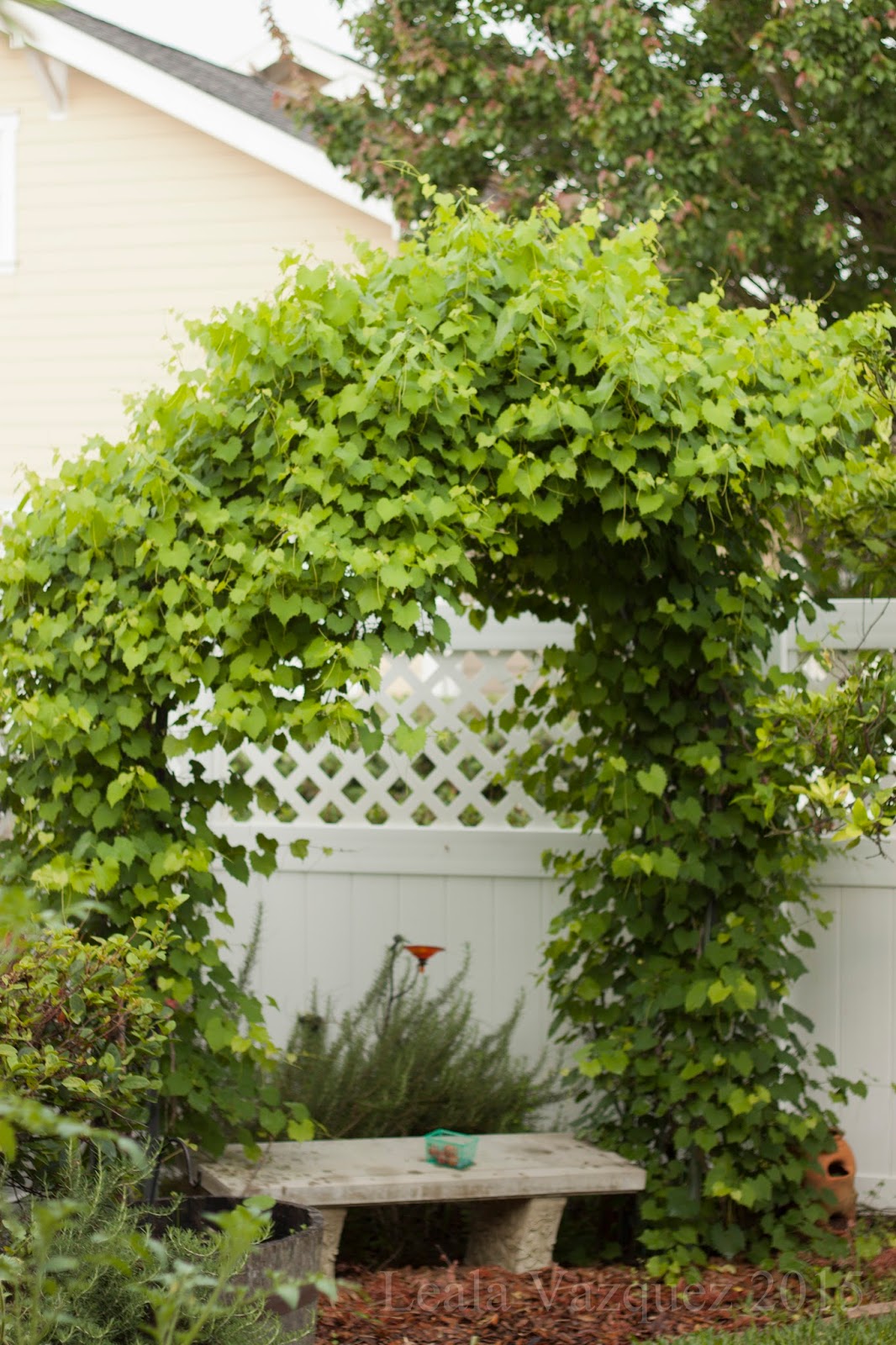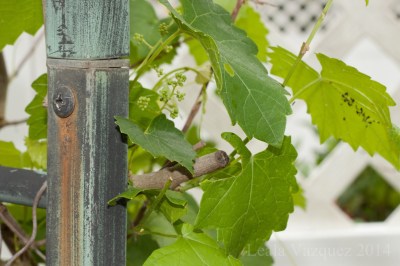 I am doing a much better job at training the muscadine grape vine this year. Last year the weight of the vine made the trellis slant forward. The extra support I added this winter is holding up.