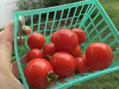 We also have a great crop of plum tomatoes. I noticed some signs of caterpillar damage (but saw no caterpillars yet). I want to spray them but the rain is every day lately. Hopefully I can spray BT sometime soon.
