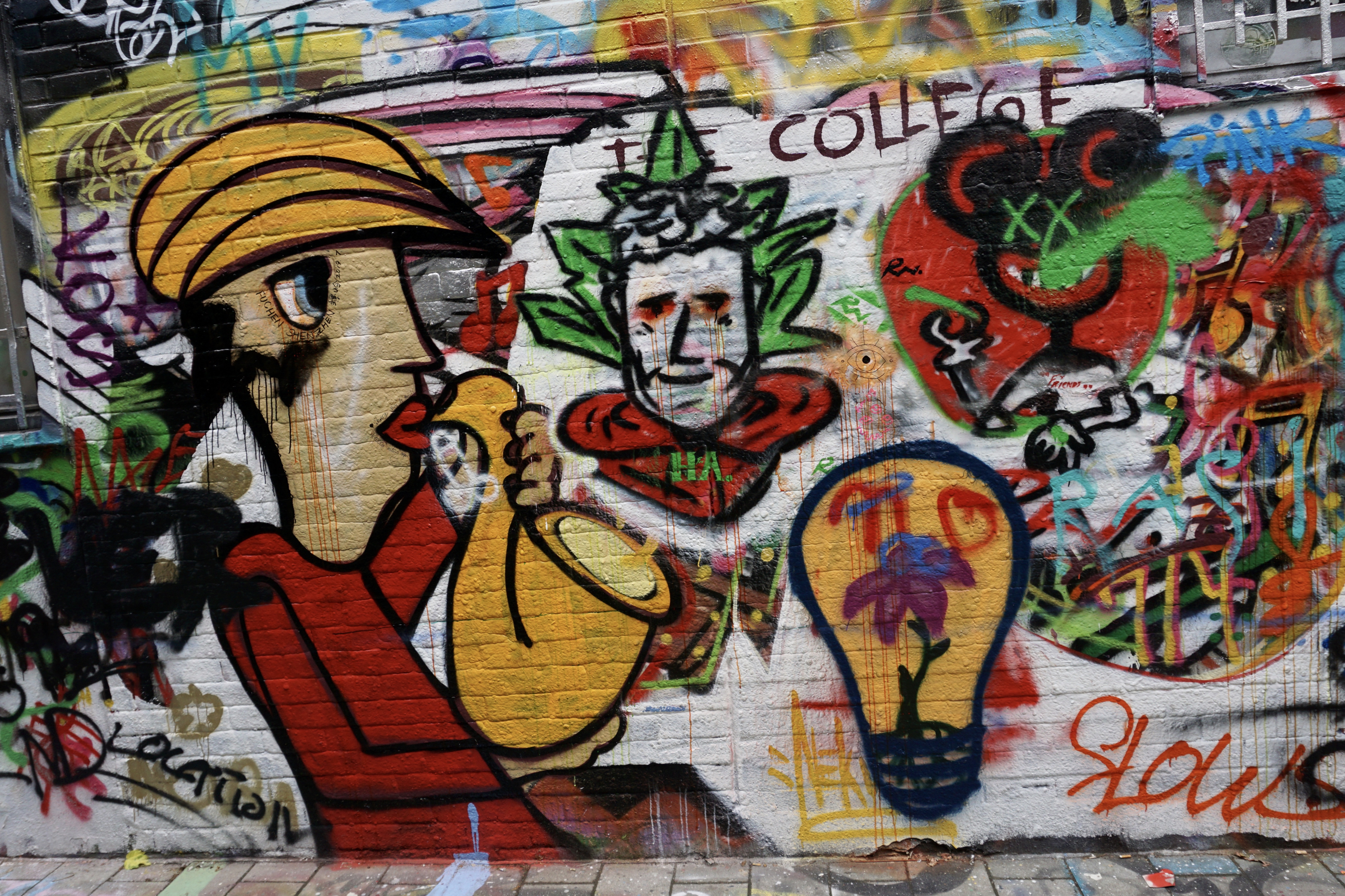 Walking back toward the hotel I come across a walking trail with some wall art.
