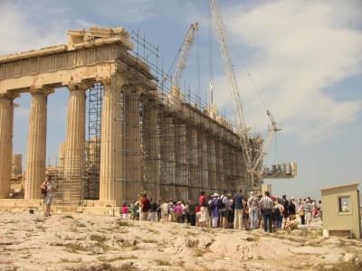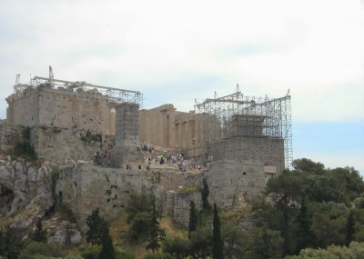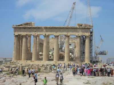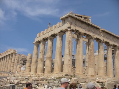 While in Crete, we visited the ancient palace of Knossos. Knossos is an ancient Minoan civilization that is one of the oldest in European lands. We wandered around the grounds with its very well planned rooms and halls. Some has been reconstructed to look as it once might have. Fresh frescos have been painted (some of the originals exist in a nearby museum.