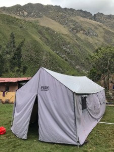 This part may gross some out but I sometimes like to talk about BM (bowel movements). I think bowel movements are an important indicator of health. This third day of the hike I finally went poo poo in the potty. This is an accomplishment not only because my routine was all screwed up but also because I didn’t talk about the bathroom conditions before (and I have no photo of this). Our bathrooms most of the hike were a privacy tent with two buckets and some deodorizing powder. One bucket was for peeing and one bucket was for number 2. It was an art to do the switchover with sore legs and not have body parts touch things if you don’t want body parts touching things. It was gross somewhat but it was kept up really nice by one of our porters. He broke it down and put it back together a couple times a day (especially days we had a lunch setup). We tipped him really well at the end. When I do strenous exercising I tend to wake up and pee a lot during the night because my body goes into detox mode. If I didn’t have this challenge my sleeping would have possibly been more rejuvenating.