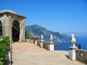 Today we visited the town of Ravello. Ravello is not too far above the town of Amalfi but due to the curvy roads required to get there, it is about a 30 minute trek. We walk along narrow streets like we had seen before in Capri. Although the streets here are more narrow and have much more character than Capri which is highly commercial and crowded with tourist shops. I took pleasure in walking the streets that contained many villas and hidden restaurants. Gardens are every where. Vines with ivy and flowers line many pathways. During our bus ride there, I viewed many lemon trees, many of which used to make Italy’s famous Limoncello drink. We were able to sample this drink today from a store that produced it. Limoncello is at the same time bitter and sweet. We are told that it is made from the seeds of lemons and then fermented.