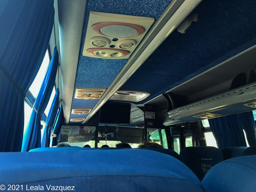 The bus ride is relatively comfortable. I mostly have the row to myself but occasionally have to let another passenger sit next to me. A man enters a bus with a burlap-like sack tapered at the top. I hear a loud qui-qui-ri-qui coming from the bag (Spanish for cock-a-doodle-doo). We are sharing the bus with a rooster – well a rooster in a bag. He is very vocal today, as heard in the video below.