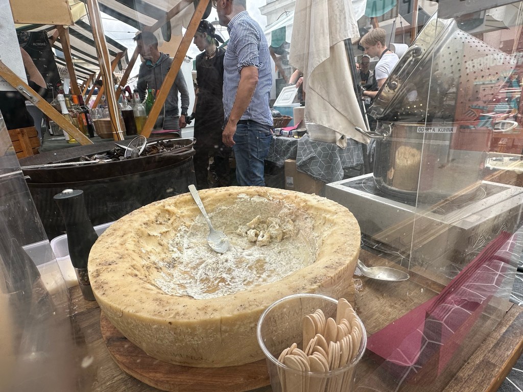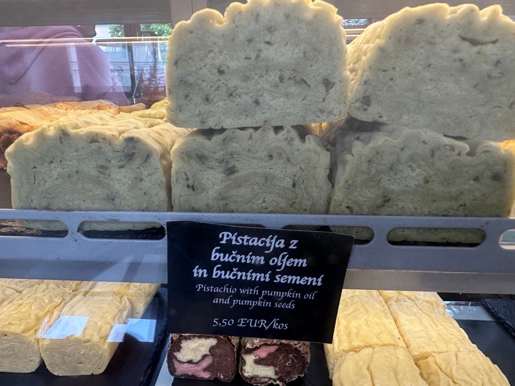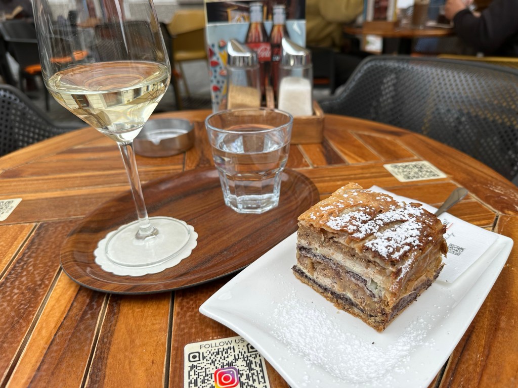 I finally try Kodila meat market and take a chance by ordering the Bujta repa (fermented turnip stew) and I am rewarded. I normally avoid anything related to sauerkraut but the sour turnip plus pork plus paprika really works for me. The waiter calls it hangover food. I am not hungover but I guess I might be working on one today with my two glasses of wine with lunch. I also try again the Prekmurska gibanica cake. It is like before, it is a semi sweet cake. It’s something in theory I should love because I don’t love sweet things but its not my favorite Slovenian dessert; I very much prefer Bled cake.