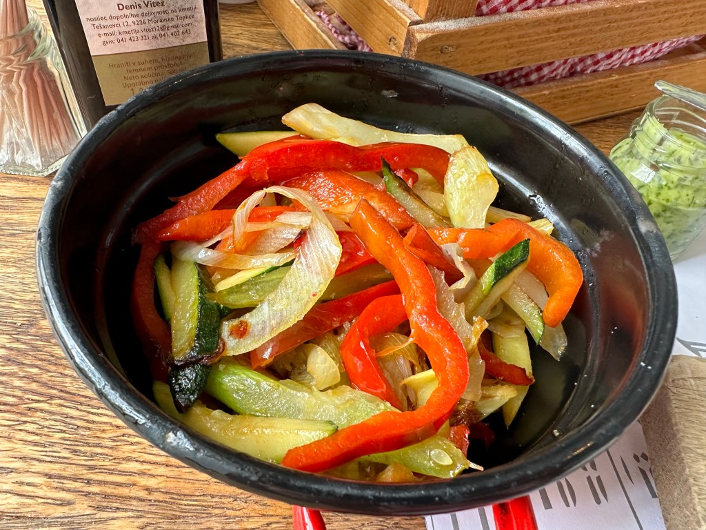 I still think Ljubljana is charming. I could make time in town to visit a museum or two but I am happy just walking around. I finally eat at a restaurant I had been eyeing last time called Julija. I order the special ravioli they have on the menu and a side of grilled vegetables.
