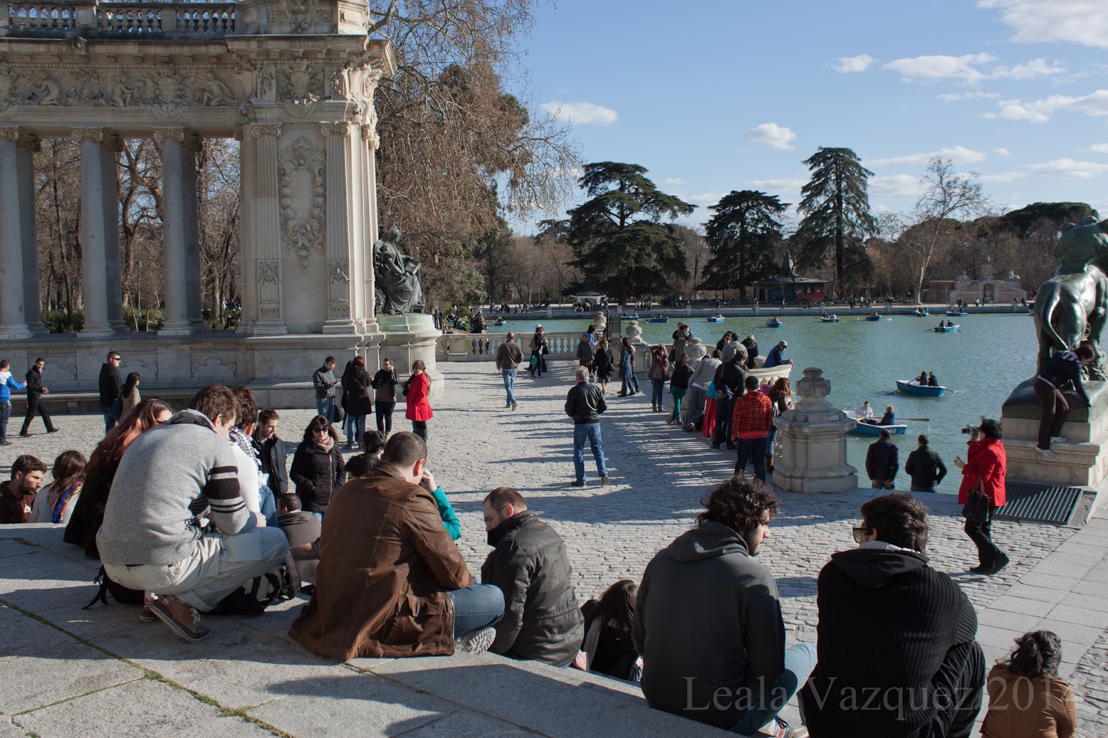 The park has many trees and a gorgeous view. Many are sitting on the grass, gathering with friends; some playing music. Madrileños really know how to enjoy a late afternoon.