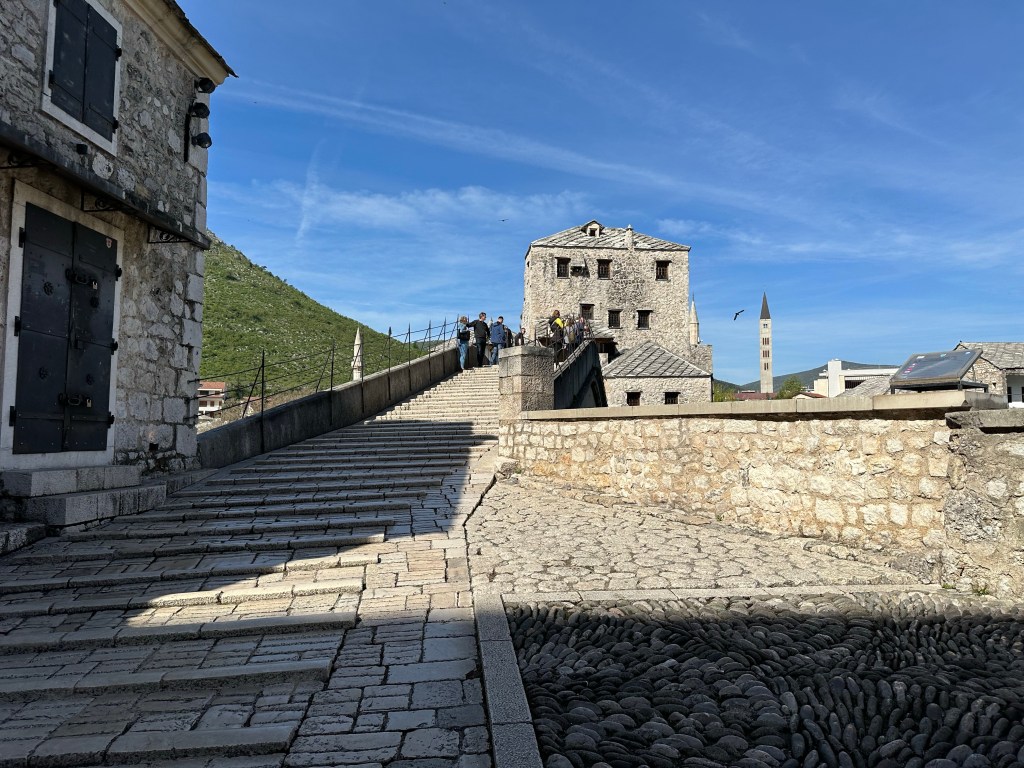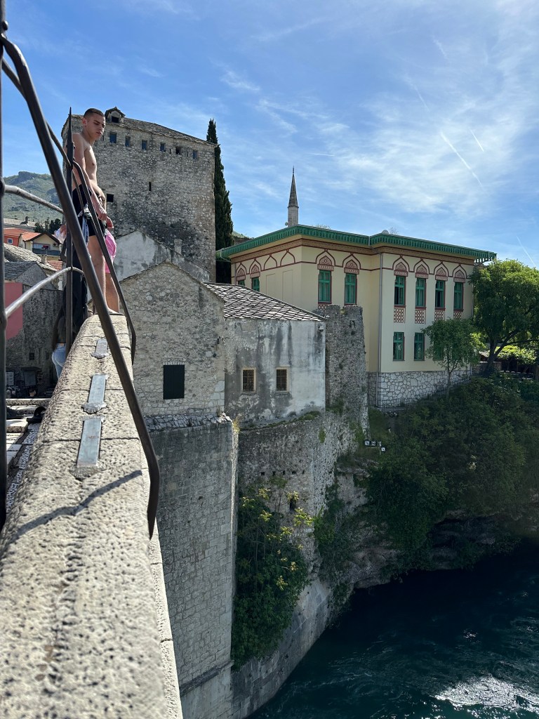 During my wandering I end up at the famous Stari Most (bridge). This unesco bridge was originally built in the 16th century but was destroyed in the war of the 1990’s. It was reconstructed in the early 2000’s. There is a tradition here of jumping off the bridge into the Neretva river below. I forgot about this tradition until I see three guys “getting ready to jump”. They start collecting money for the jump – I later discover they are actually taking bets whether or not someone will jump. After a production they step down and don’t jump. Confused as I am I watch them for a while repeat this same routine multiple times. I am convinced it is a scam and happy I don’t give them money. I find out later from a tour guy that they do eventually jump but these younger guys make more of a production out of it to collect the most money. I still not have seen anyone jump but like I said it is a tradition and actual club you can join to work your way into the big jump.