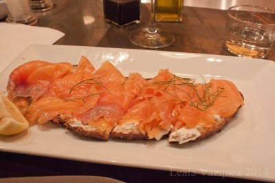 I got a lovely open faced salmon sandwich and a glass of white wine.