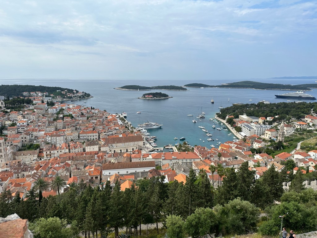 Our ferry takes us 3 hours to get to the charming Mediterranean town of Hvar. It is the beginning of season and we are the only guests except one other small group at our B&B. This town is pricey so we close this B&B with great reviews because there is a family member that will frequently be able to take you to and from town. Otherwise it is a 2 km walk uphill, which we have yet to attempt. It is still a little chilly in town and they have just refilled the pool for season; not sure if we will have enough time to swim since our time here is short but the pool and the view is nice. They also have a pretty nice breakfast spread but it is 15 Euros, expensive but seems to be on par with this island. This is not a discount vacation location. We are sad that we are too early to enjoy the lavender fields but we do have an all day cave boat tour scheduled tomorrow.