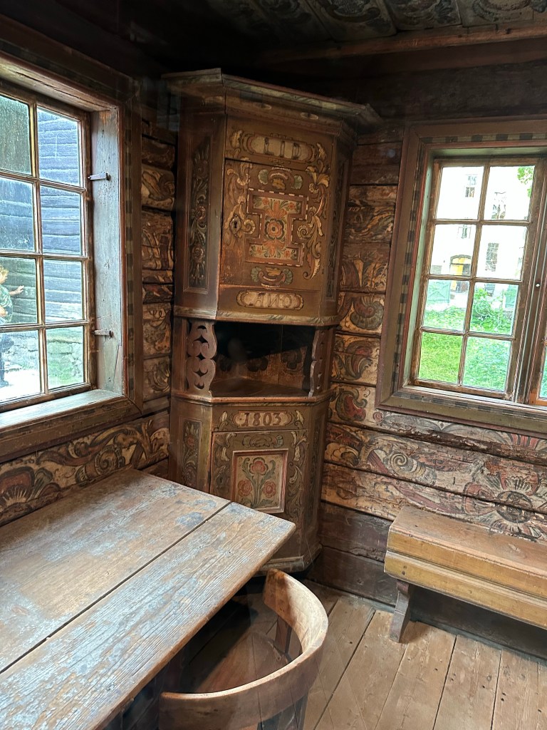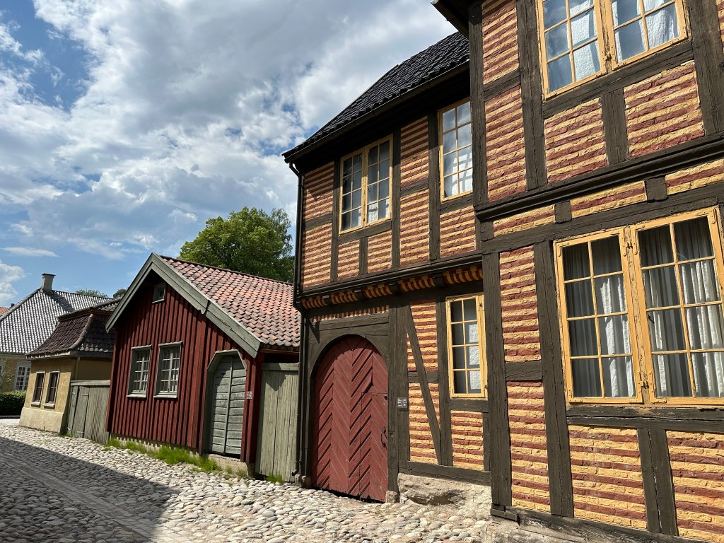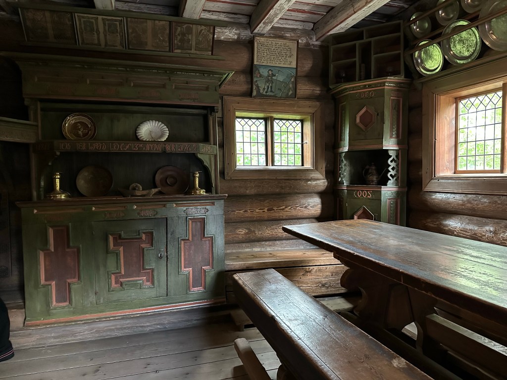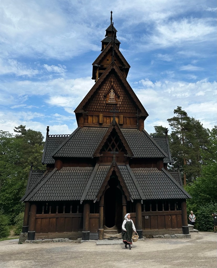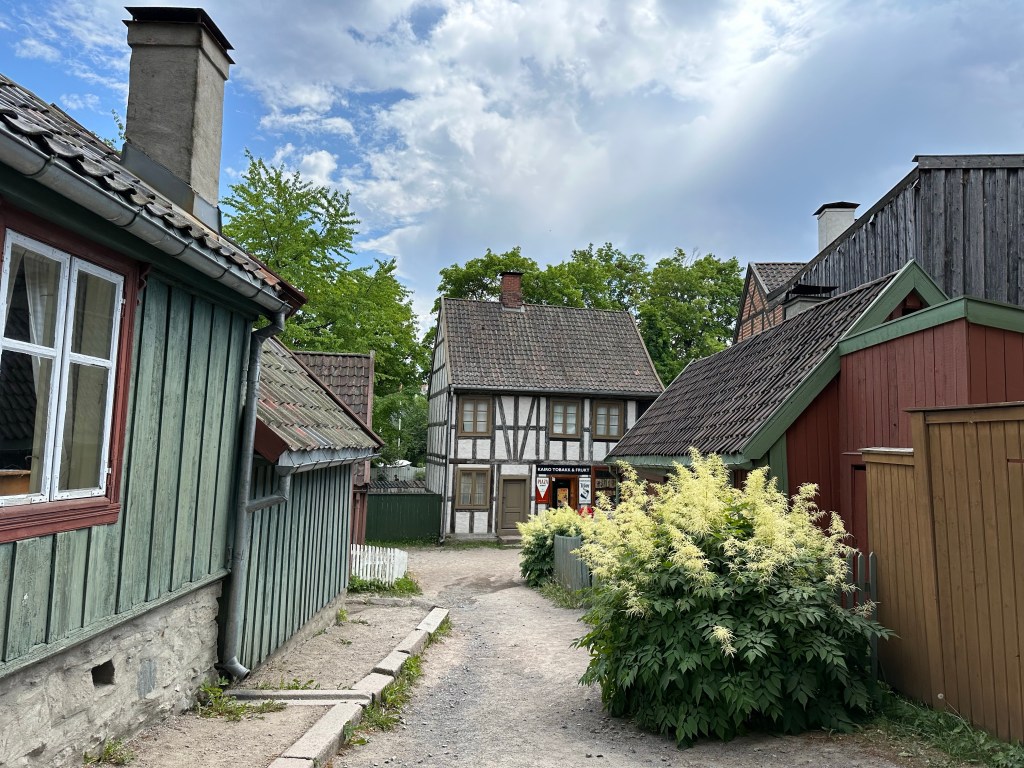 This morning we have a quick flight back to Oslo where we finish up the trip. For our next accommodation I have booked a two bedroom apartment in the nice Frogner area of town. We visit the rental office to drop off our bags because we are too early to check in. From here we take the bus to the Norsk Folkemuseum. Did I mention we are here in a heat wave? The highs are in the low 80°F (average 70°) but the sun is very intense since we are located much closer to the sun at summertime. It gets quite warm when you are not in the shade. Most places have no air conditioning so it is getting warm indoors during the day. From what we have been told its unseasonably hot right now. Even Bergen is more hot and sunny than usual. We caught no rain at all there.