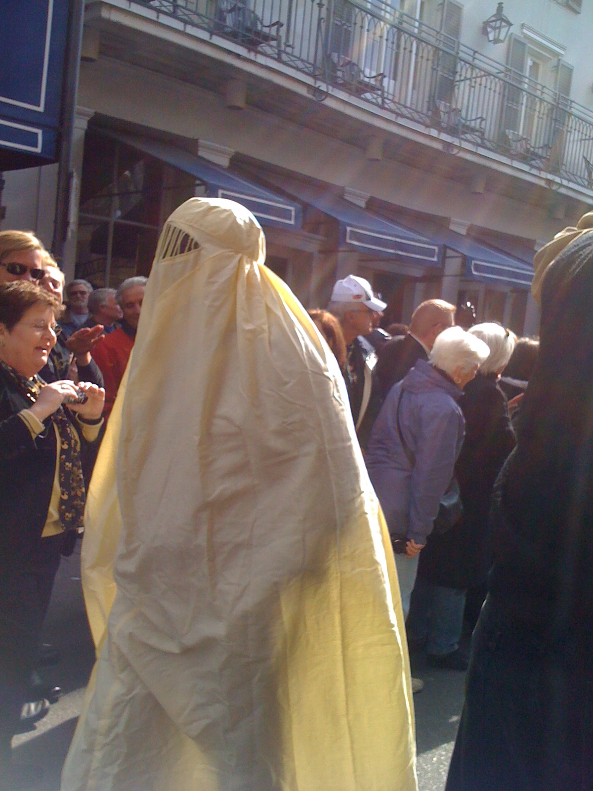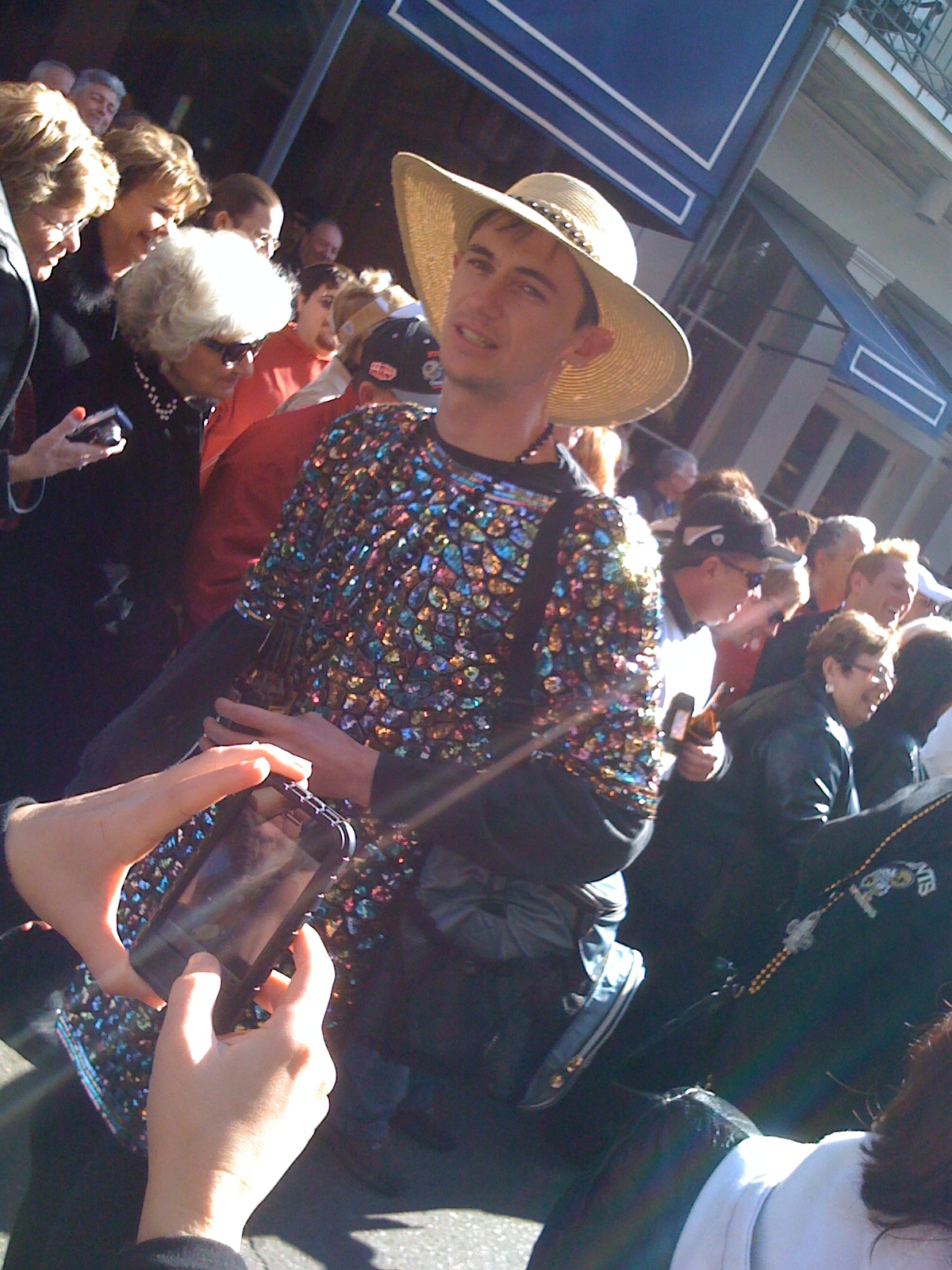 There is the standard grand Marshall, local officials, and police and first responders along with many bands. Most of the marching bands are from high schools and colleges in the USA. We see one or two multi-cultural groups such as Venezuelans and break dancing French but just about zero Irish heritage groups: No Irish dancers, no St Patricks themed floats, and no kitschy leprechauns. All we see is costumed performances of different themes, all impressive in their own right, but none having to do with the theme of the day. The only groups remotely related are the ones that have pagan themed costumes and performances. At least those can be explained as how Ireland was before St Patrick came in and spread christianity (no he did not chase out the snakes….there are no snakes in Ireland).