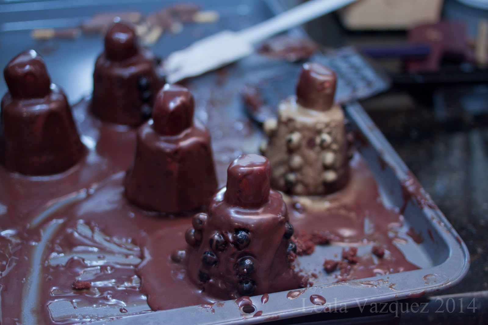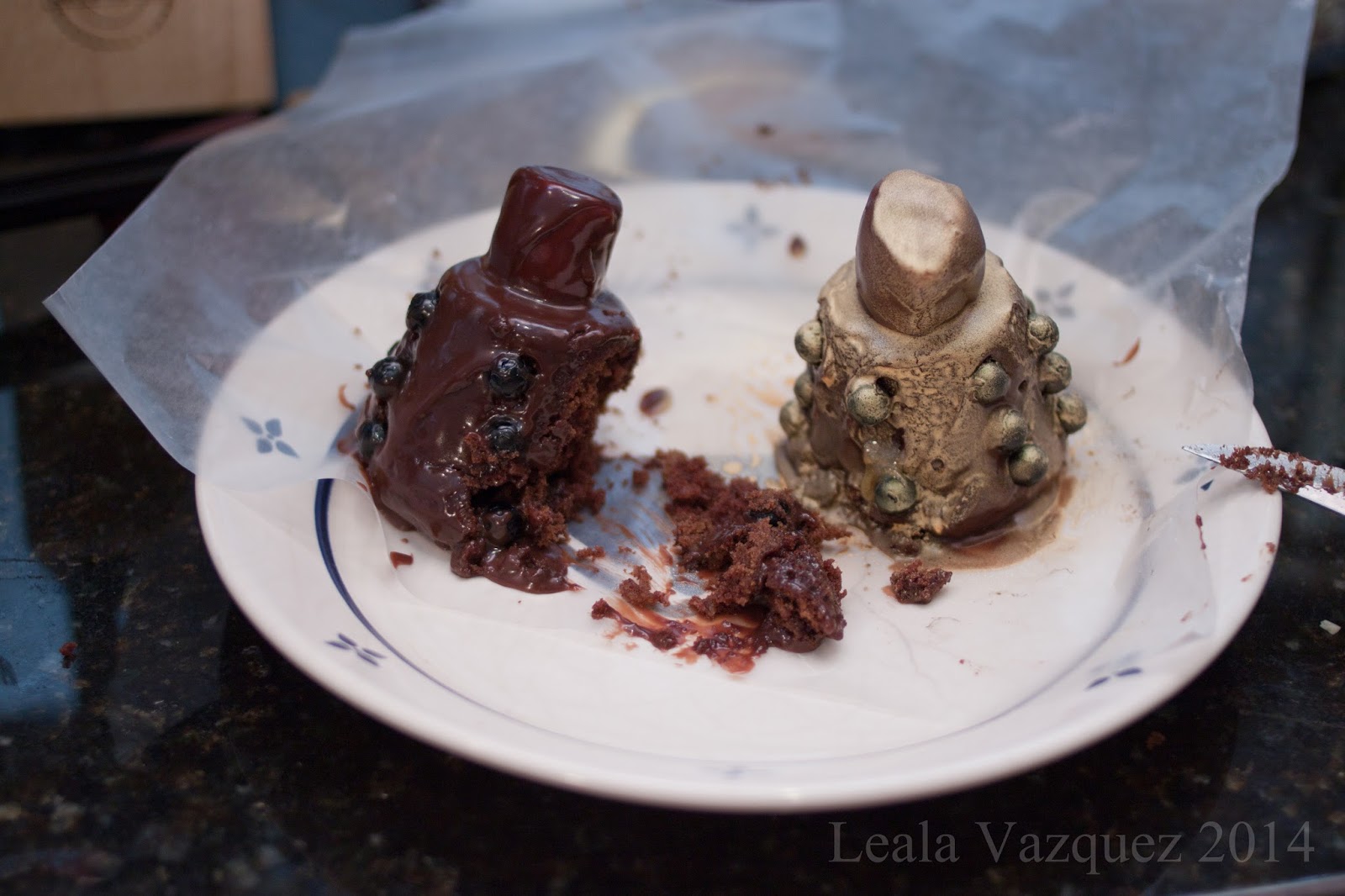 The ingredients called for melted chocolate mixed with heavy cream. It was a liquidity mess pouring this over the cakes.