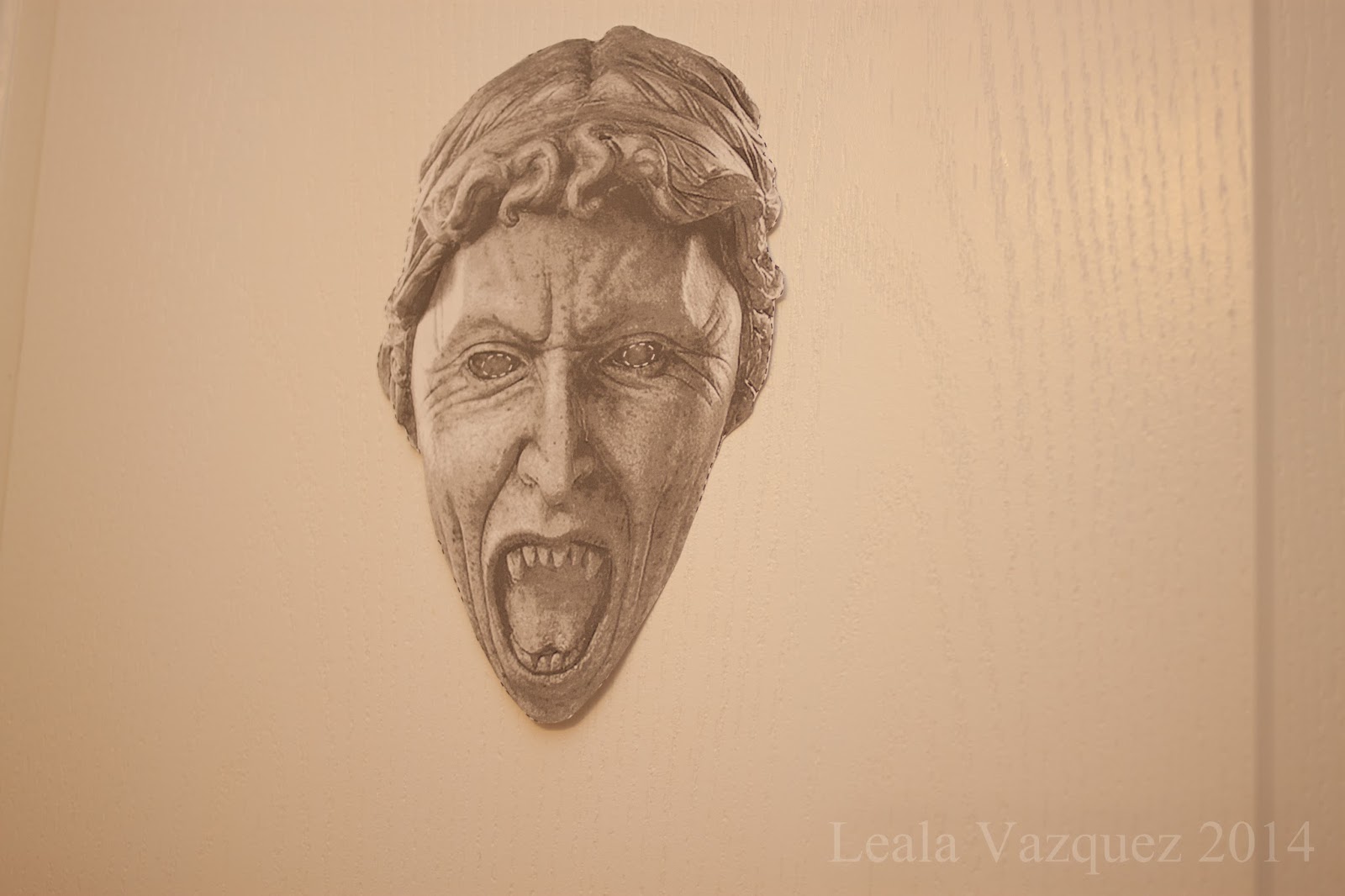 This was on the ceiling of the bathroom to creep out the guests as well as some eyeliner so you can remember that you saw him.