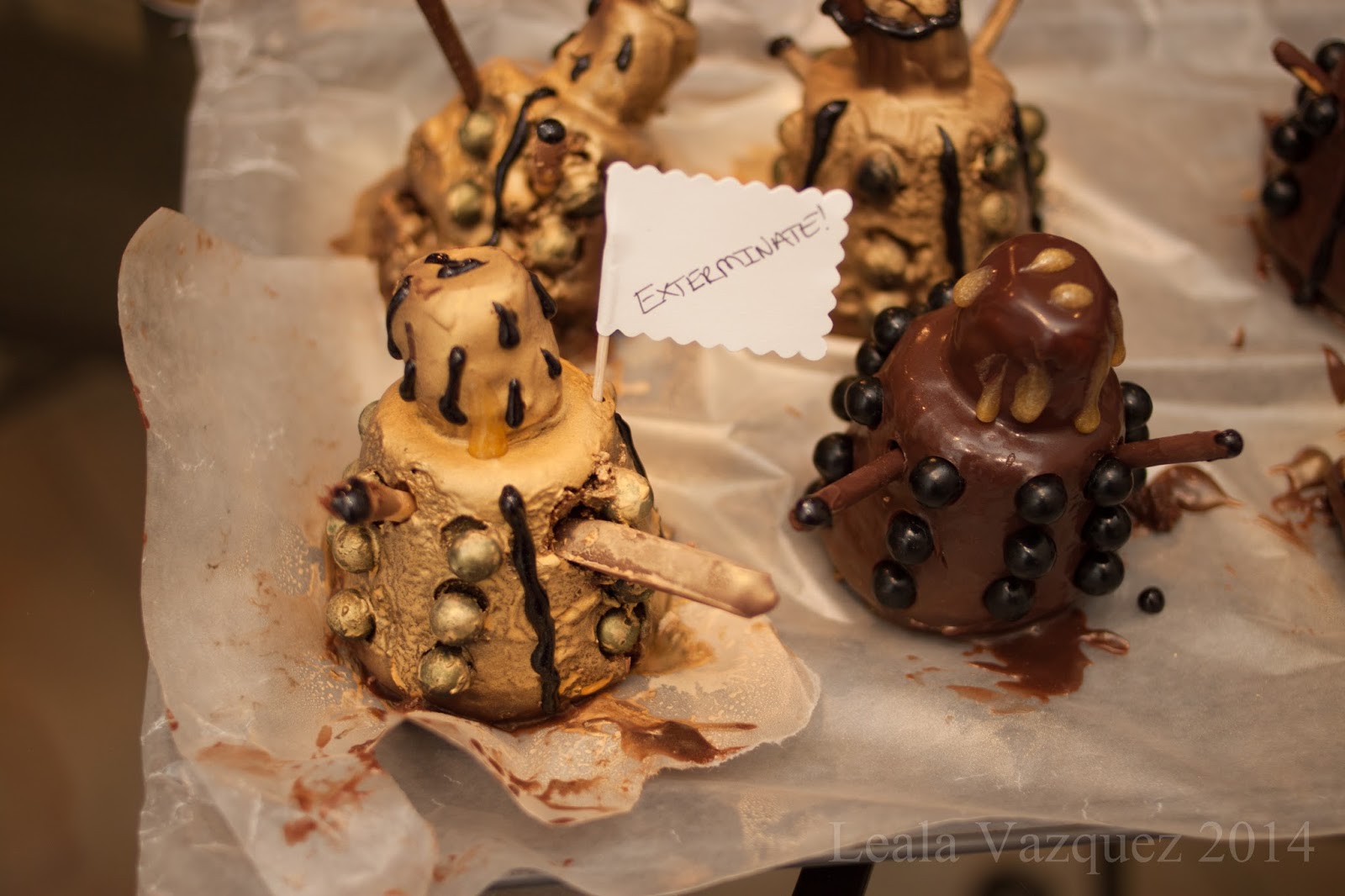 For non-sweets we had Silurian pods, bowtie pasta, green stuff was for the Radioactive-Spuds. We also had k-9 dogs (hot dogs) and fish fingers (not pictured).