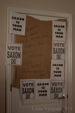 I pieced them back together and continued my decoration. I used pocky, signs, and food spray paint.