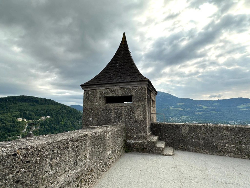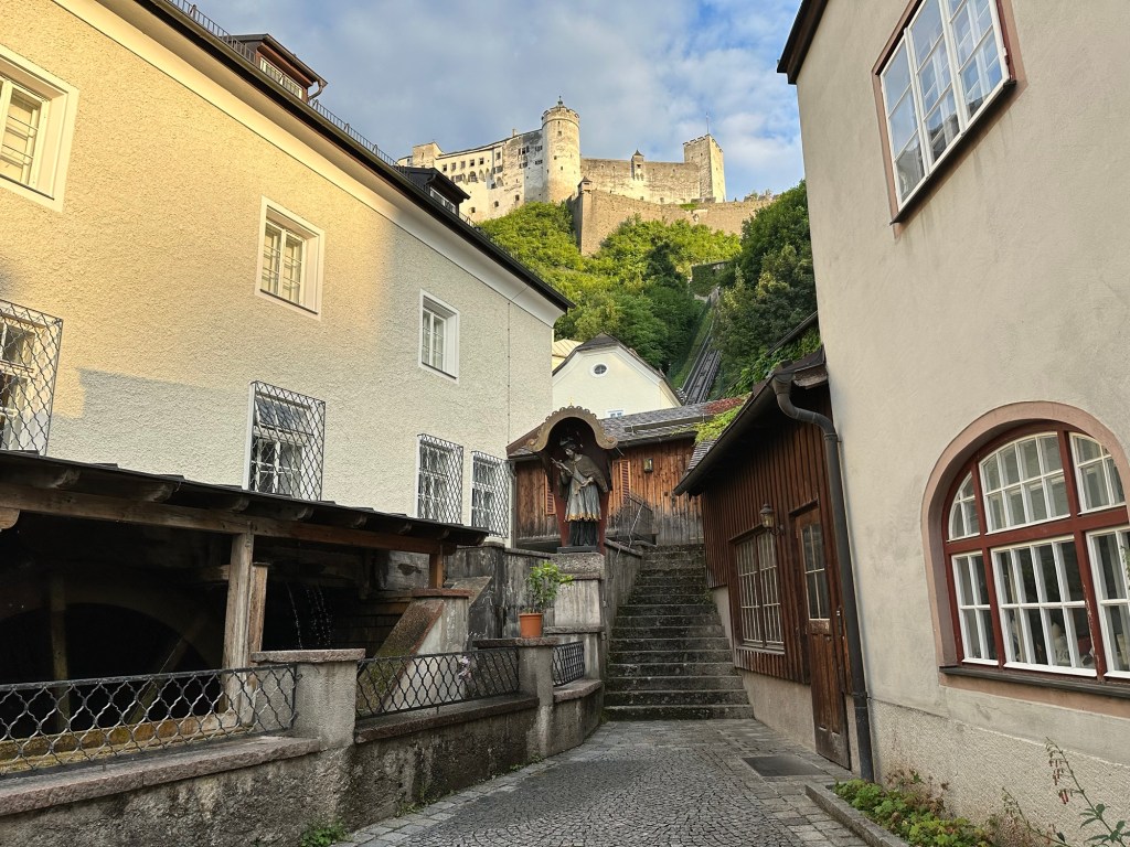 Finally the last day in Salzburg I head up to the fortress. I walk by that quiet beautiful cemetery on the way to the funicular. I am glad I take the funicular because the walk is long and hot, all uphill.
