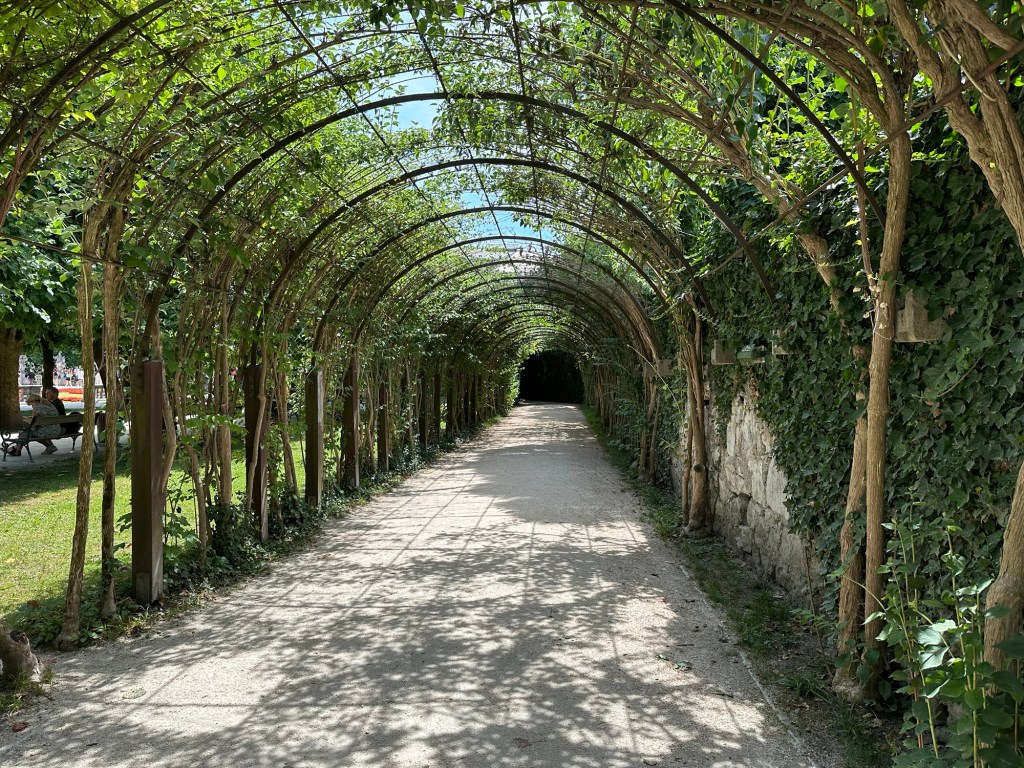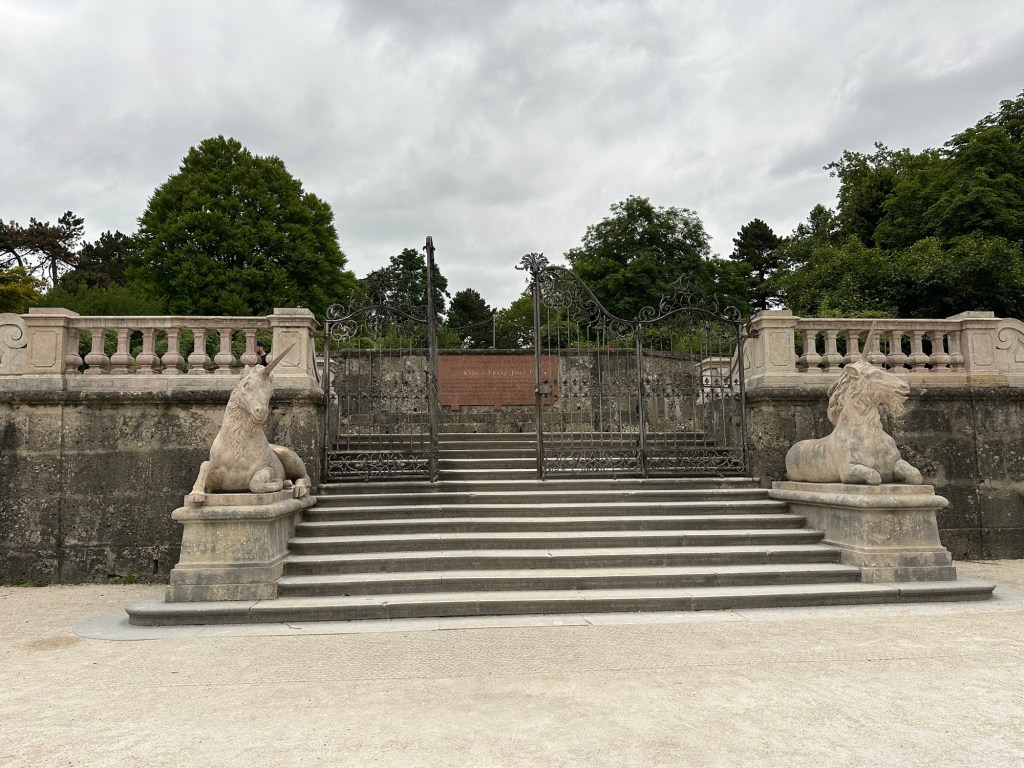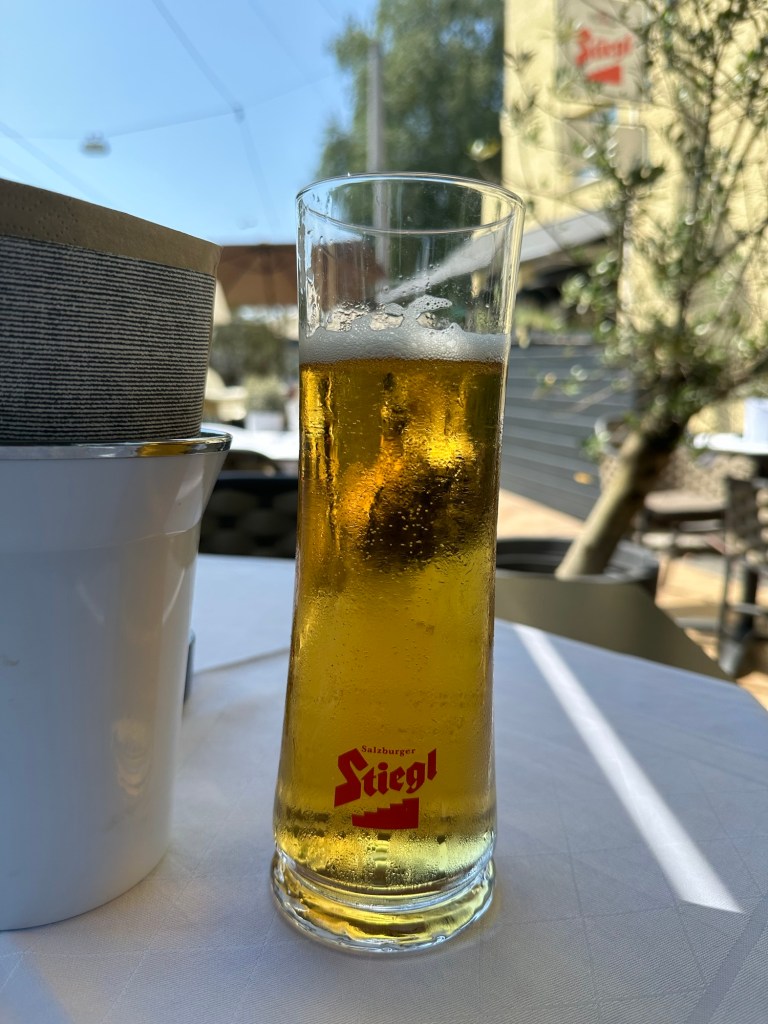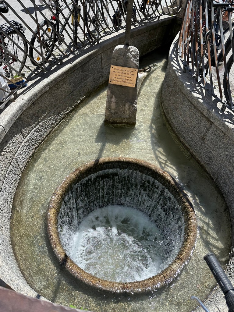 Even though my admission ticket includes a return ticket on the funicular I am going to walk to the bottom because the goal is to walk down to the Augustiner brewery and have lunch. However for some reason I cannot find the path that leads straight to the brewery as suggested by others the other day. Instead I walk down through the old city, following along the cliff side. I see people making the difficult trek up by foot. The pathway is long and steep and it is very hot. When I reach the bottom I see the funicular line is quite long. I see now how walking uphill could be seen as a good alternative to the funicular line but definitely not on a hot day like today. I hope no one dehydrates on the way up. I pat myself on the back for my early morning start.