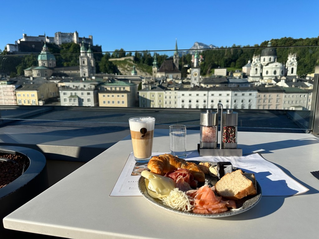 In the morning I do a walking tour of the city. First I splurge for brunch on the roof of my hotel.