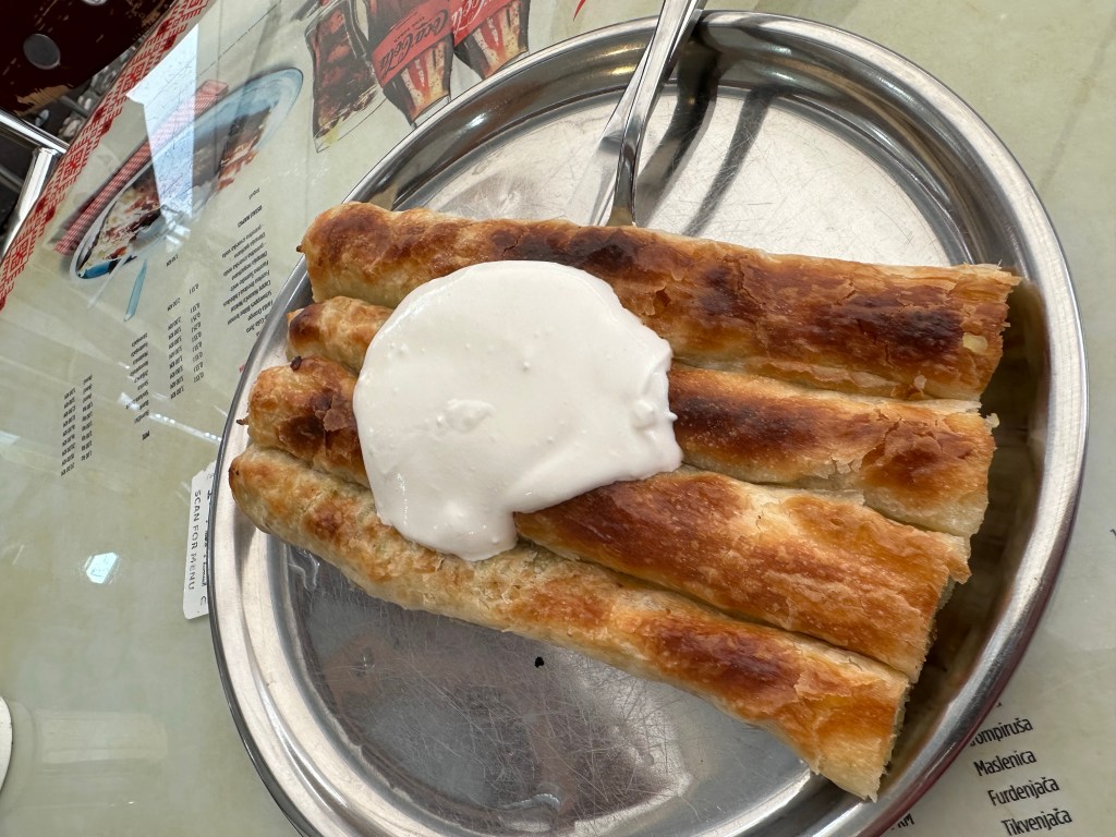 I had potato burek yesterday and today I try the one with meat. I realize it is a mistake because not being hungry since I already had morning cheese. They give me way too much burek even though I stress I want the small portion. Also it is very greasy. I throw a big amount of it away because I don’t think it will keep well while I explore town due to the excessive grease.
