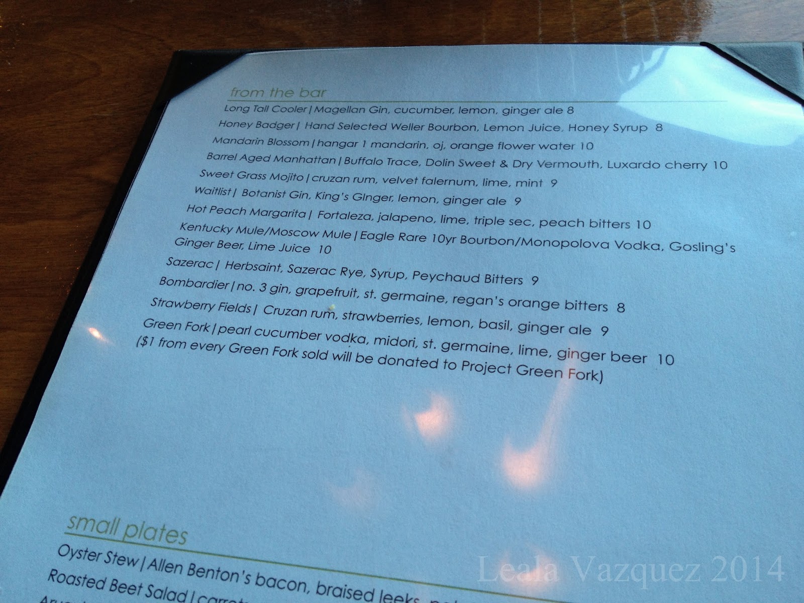 Upon recommendation from a friend I decided to eat dinner at Sweet Grass. Sweet Grass is a southern bistro with a farm to table flare. There were many local ingredients on the menu. Next door is their sister restaurant called Next Door that provides a more casual dining experience. I chose to eat at the more formal restaurant.