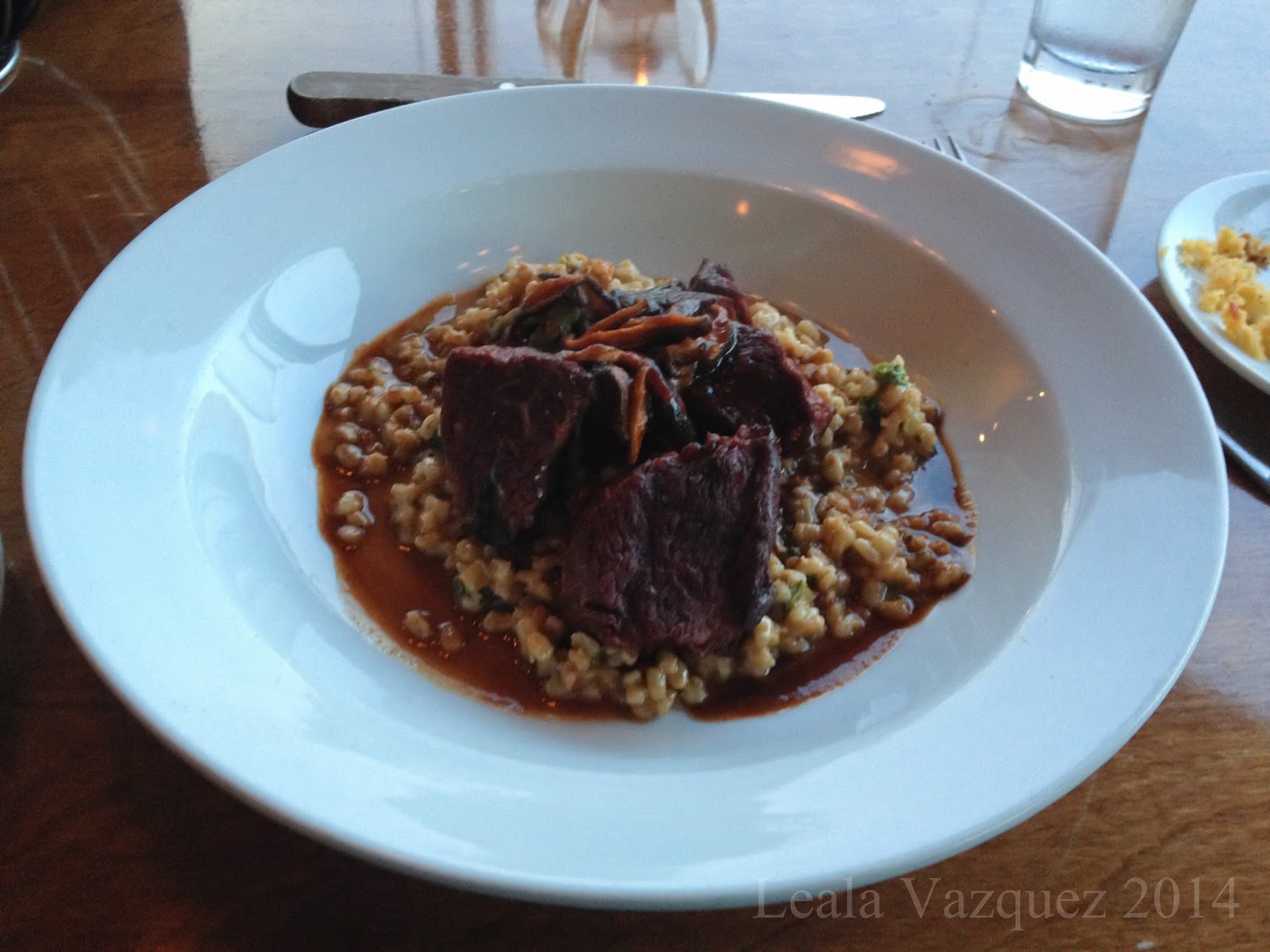 For the main dish I settled on the medium plate chuck roast over the mushroom barley risotto. The meat easily fell apart and was full of great flavor. I really like what the risotto added to the dish. There was just the right amount of savory gravy.