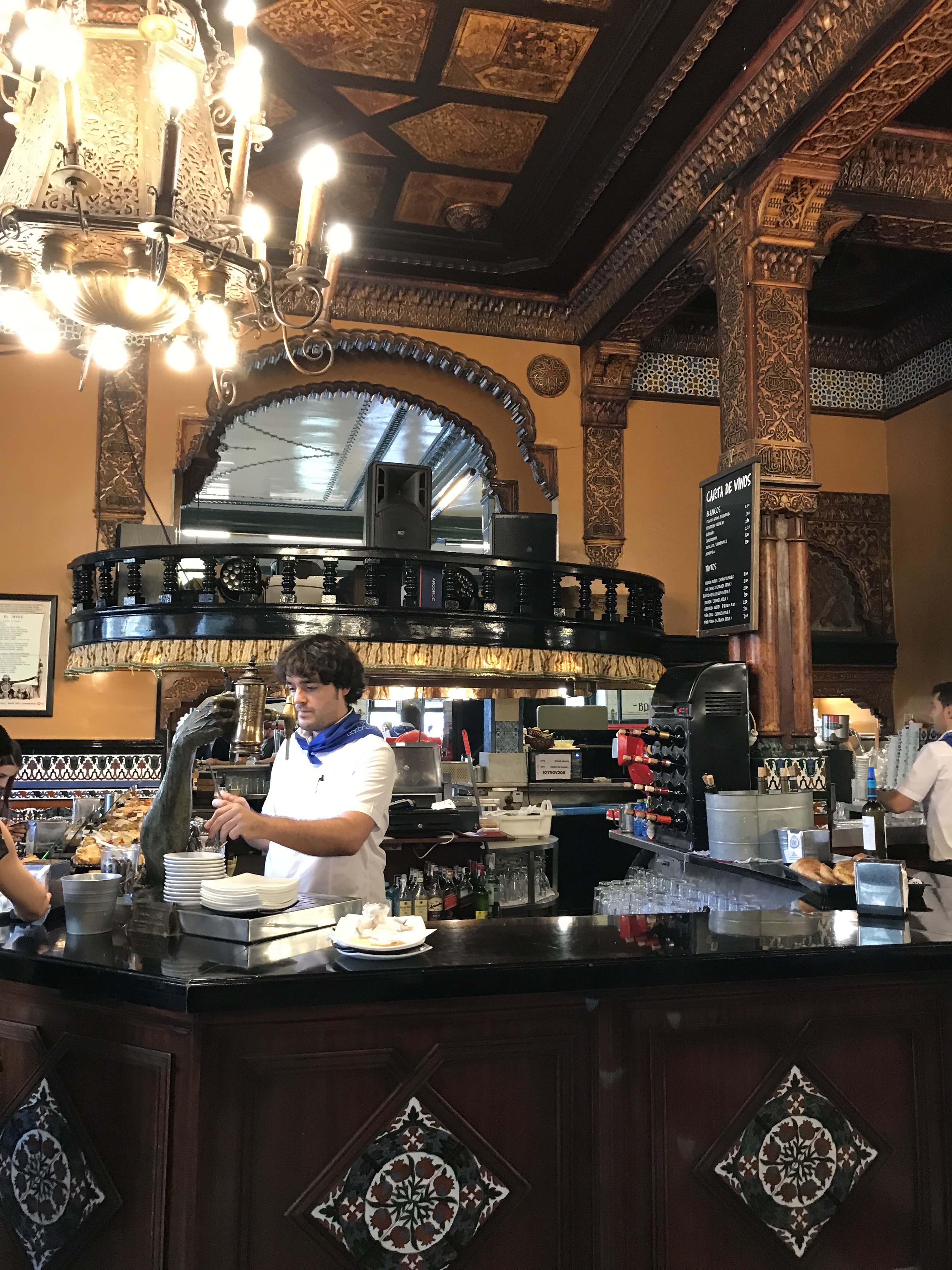 I finally find an authentic tapas restaurant, La Sitarilla, and it serves free portions with each drink you order. I probably could have sat there for hours trying a good number of dishes; but I only try two today because the servings were a good size.