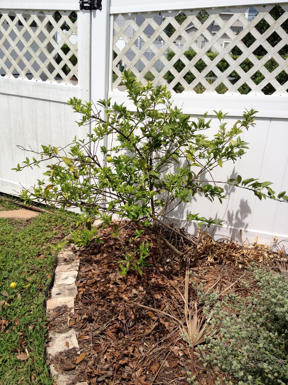 My Charlie Brown Key Lime tree. It is dying, like the lemon did, but it has looked sad like this for two years so I am holding out hope that it may make it. It has produced some great key limes.