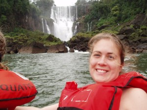 The boat cruises up to the cliff and the waterfall pours onto the boat and into glasses. They let us taste the fresh waterfall water.