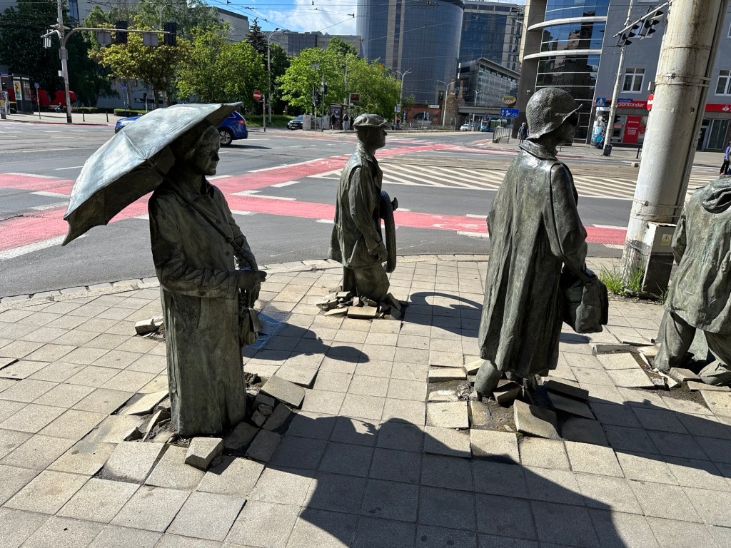 One the way to the train station in the morning I stop by the statues called the passage. The figurines look like they are disappearing into the ground but then appear again on the other side of the street.