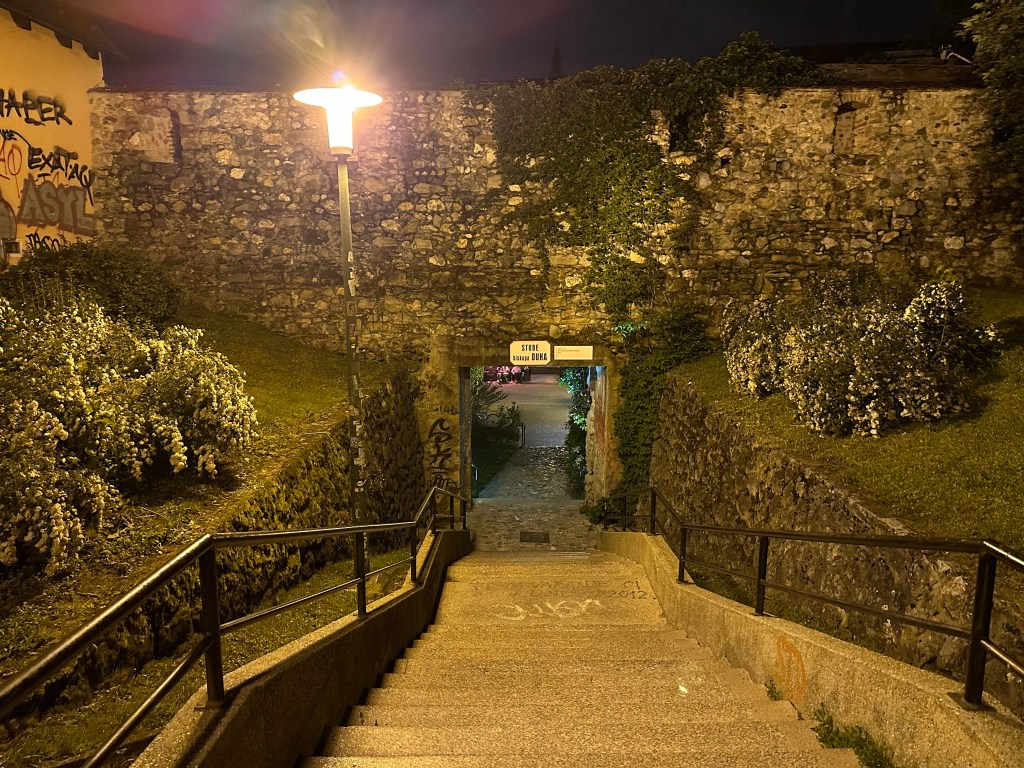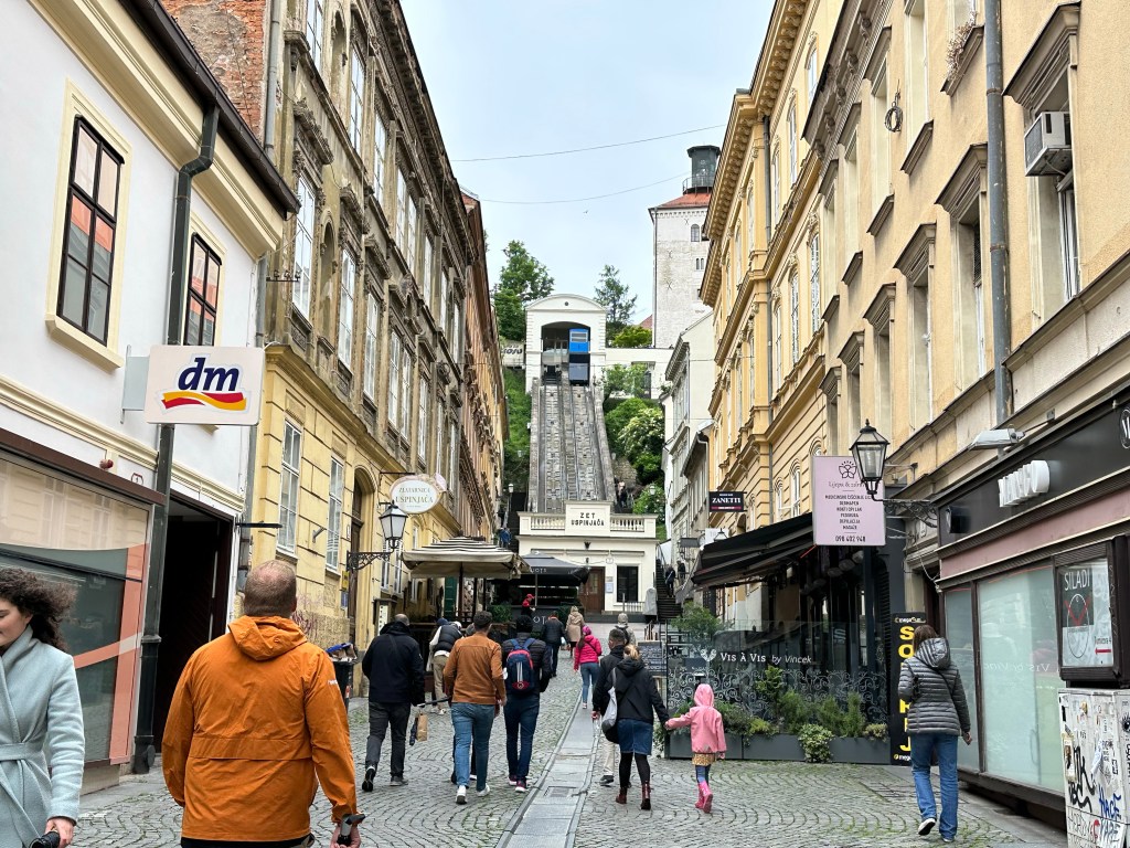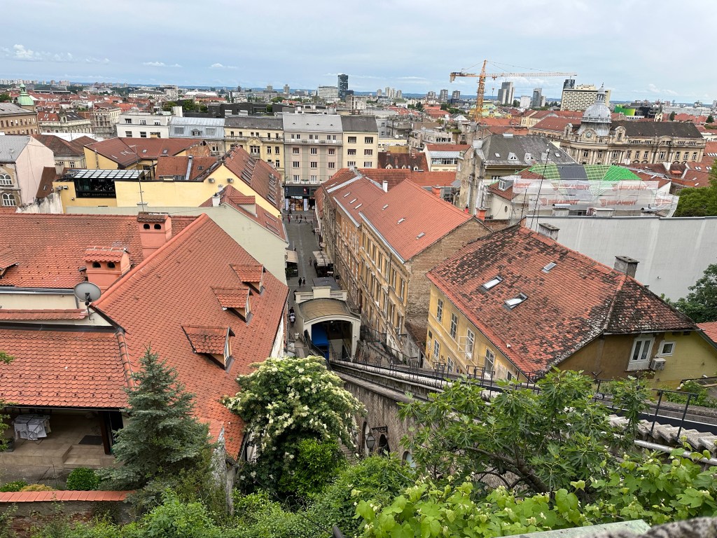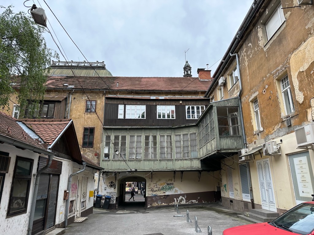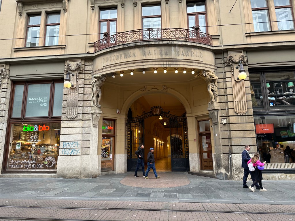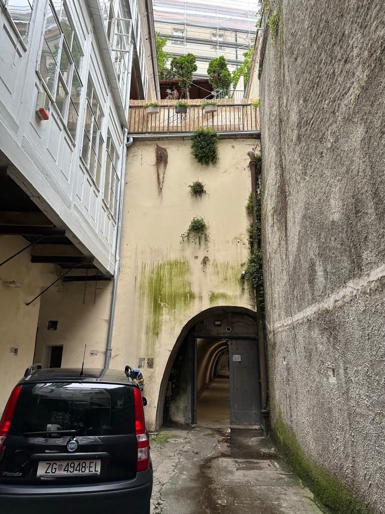 We are told about the performance artist Tomislav Gotovac and the filming of “Zagreb I love you” (I later see this in Graz, Austria in a museum). There is a sidewalk plaque with a footprint noting this moment but I forgot to take a picture.