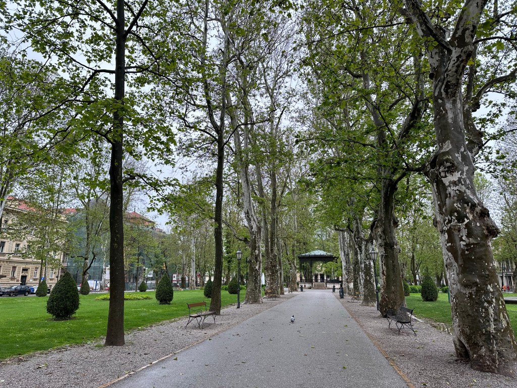 I am glad for a late start today because the rain does finally let up for my first tour which is a general city tour. The tour starts in the park Zrinjevac, one of seven city parks. Our guide talks about the upper and lower cities and Kaptol.