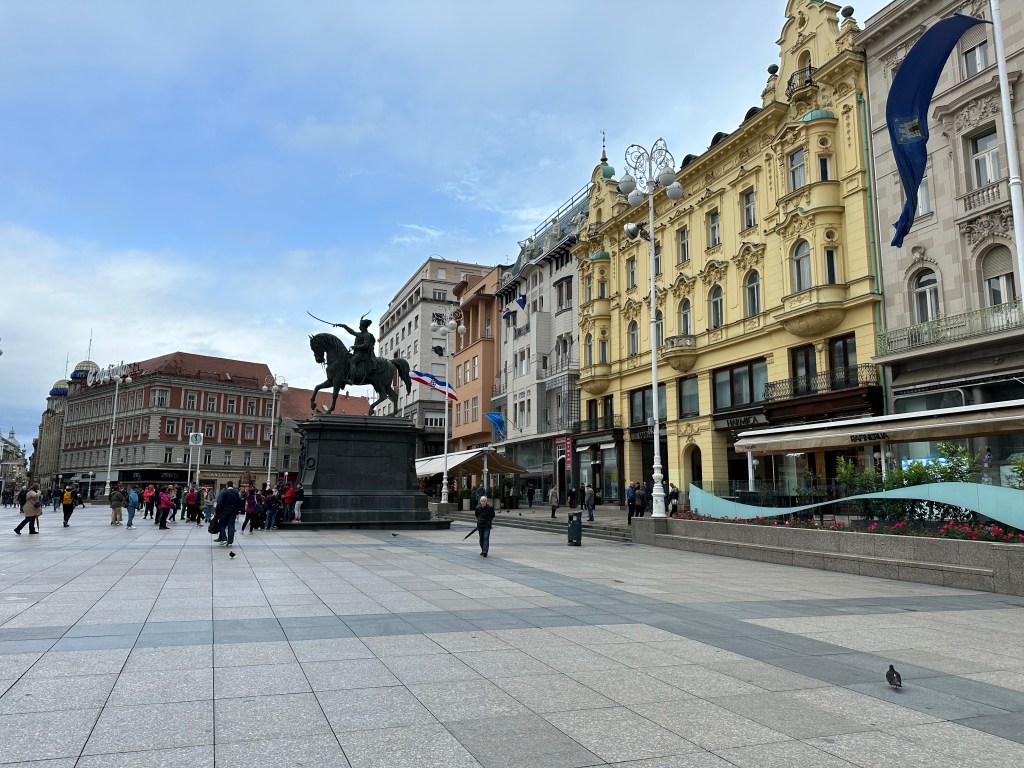 Our guide tells us about the statue in the main square, a leader on a horse that originally was overlooking the town in the opposite direction (looking at upper town). During the communist time of Yugoslavia the statue is removed from the square. Thank goodness it is not destroyed and kept safely in a museum. After Croatia becomes independent again the statue is returned to the square but this time pointing in the opposite dirtection because most of Zagreb now exists in that direction and the statue is overlooking the city.