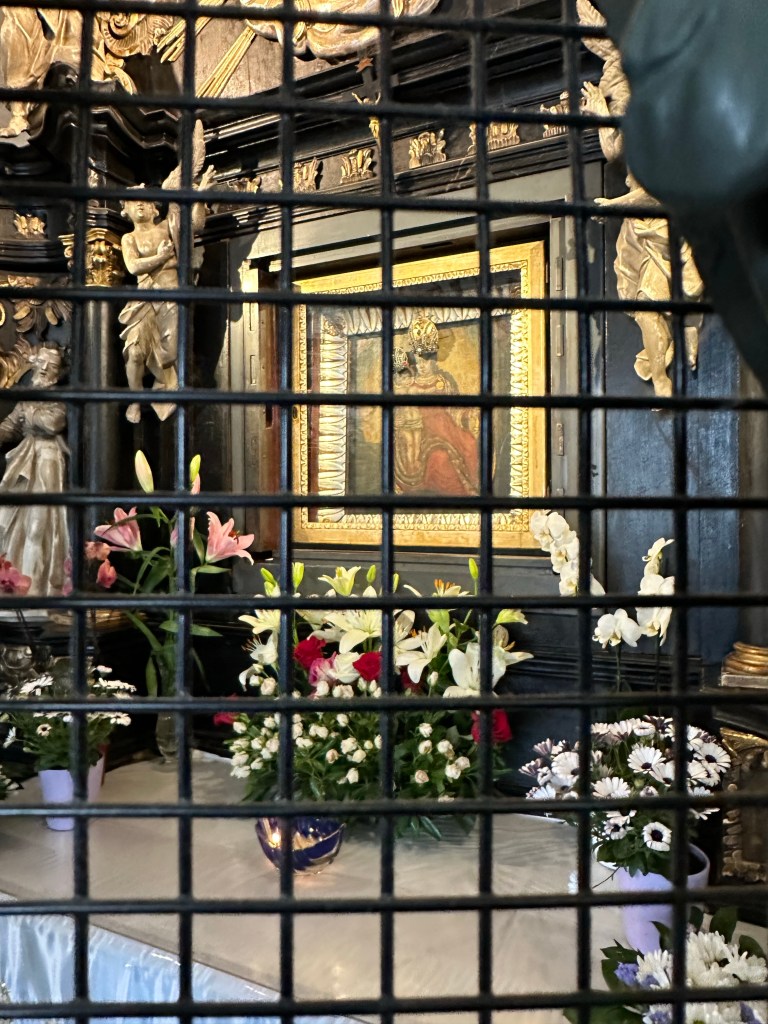 Finally we end up at the little gate that has been turned into an alter to the Madonna since it is the only thing that is not destroyed in a fire.