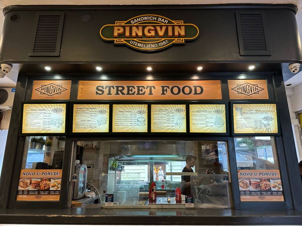 I am wet and tired and want to call it an early night. I pick a restaurant that looks good enough after I discover my first choice is actually a fancy Michelin place that is booked up more than a week in advance. At the local restaurant I have more Strukli and a big seasoned meat burger. The food is tasty but very filling. I can’t keep eating like this; I need to start asking for to-go boxes. Balkan people love large portion sizes.